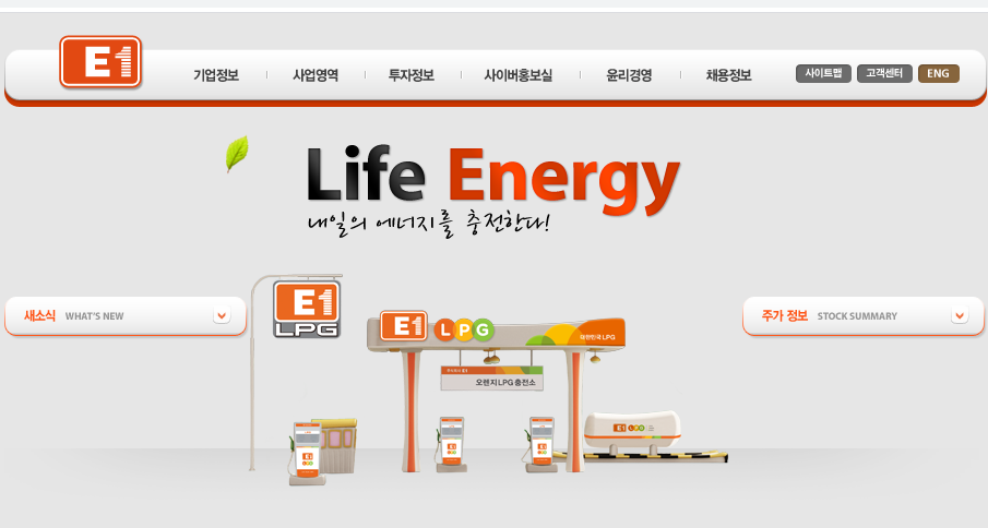 여수와 인천, 대산에 대규모 저장기지를 보유하고 있는 주식회사 E1은 사우디아라비아, 아랍에미레이트와 같은 중동 산유국은 물론, 호주, 말레이시아 등지에서 고품질의 LPG를 확보하여 국내의 가정과 업소, 산업체 등 각 수요처에 안정적으로 공급하고 있다.