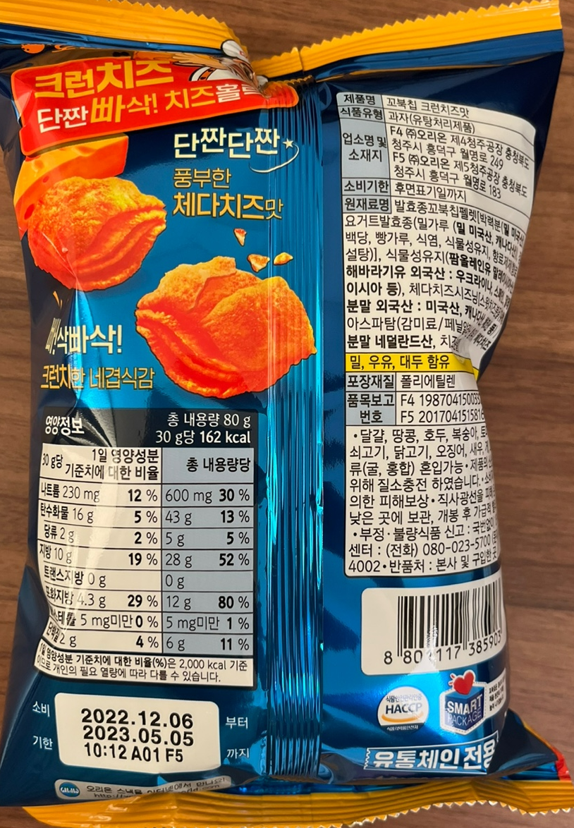 꼬북칩의 뒷면을 자세히 보자.