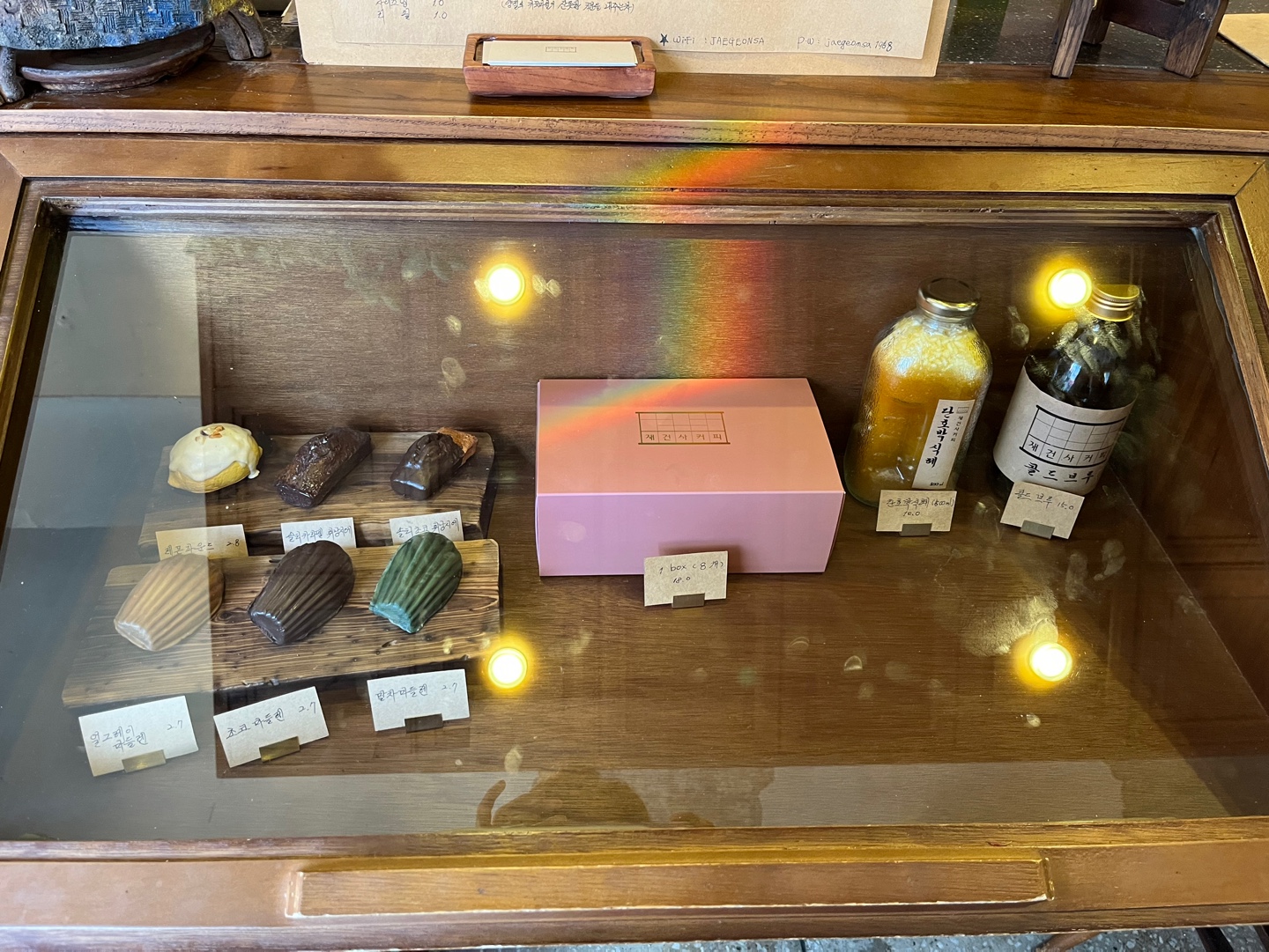 쇼케이스 안에는 카페에서 파는 것들이 진열되어있다.