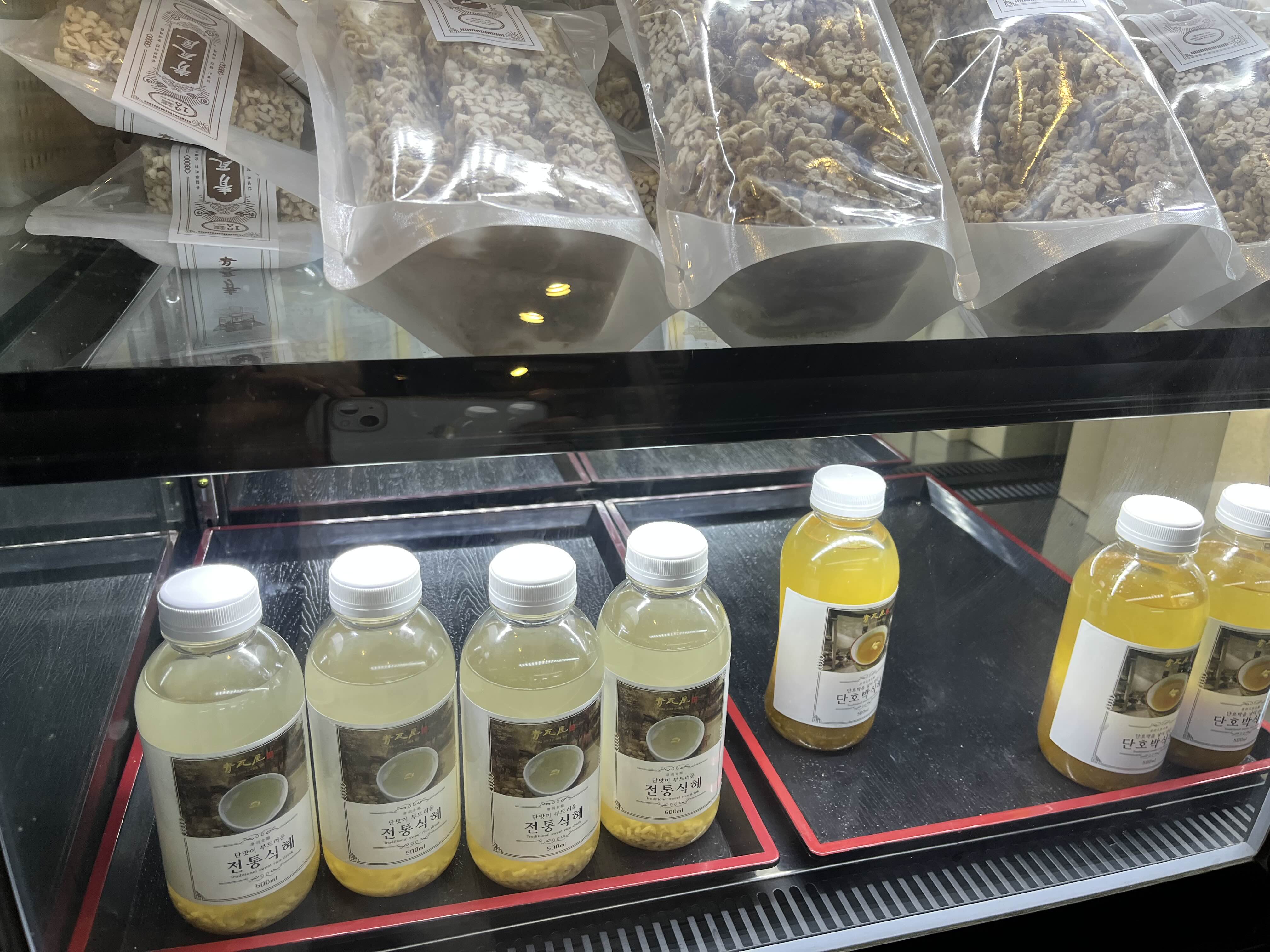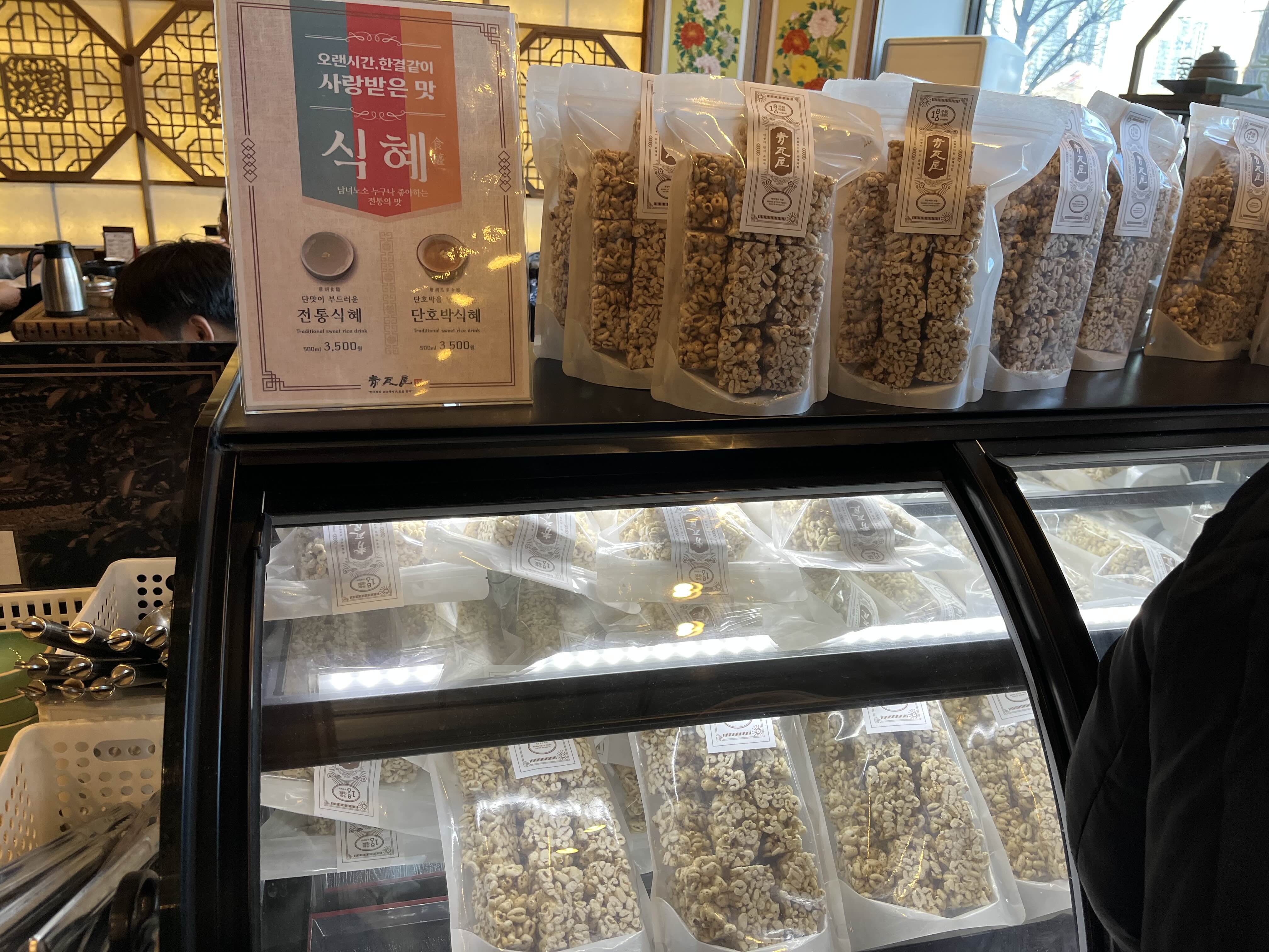 셀프바 옆에는 식혜와 쌀과자를 판다.