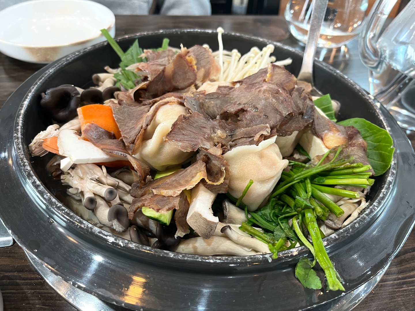 한 줄 평: 버섯이 잔뜩 들어있는 단백하고 깔끔한 만두 전골!