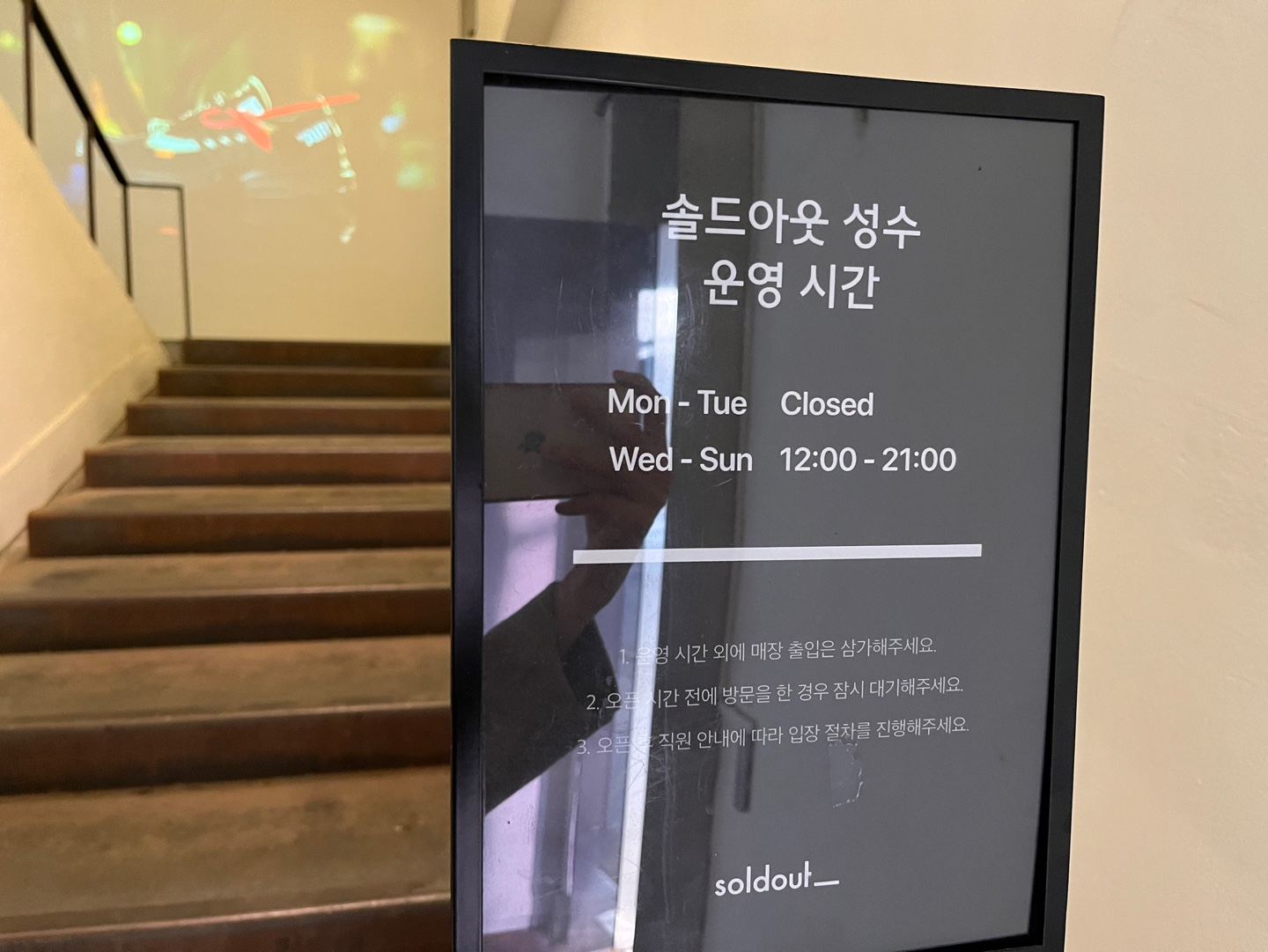 오늘은 '성수동 솔드아웃, 성수동 soldout' 매장 방문 후기를 남겨보고자 한다.