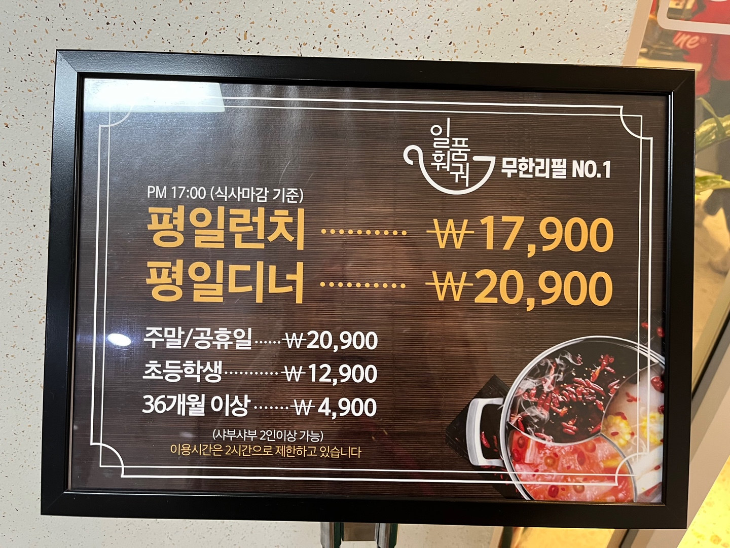 미사 훠거 무한리필 '일품훠거' 가격은