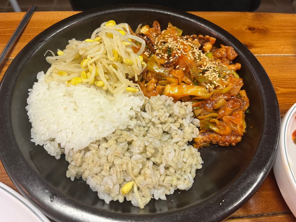 입안에서 보리알과 밥 낚지가 너무 잘 어우러진다.