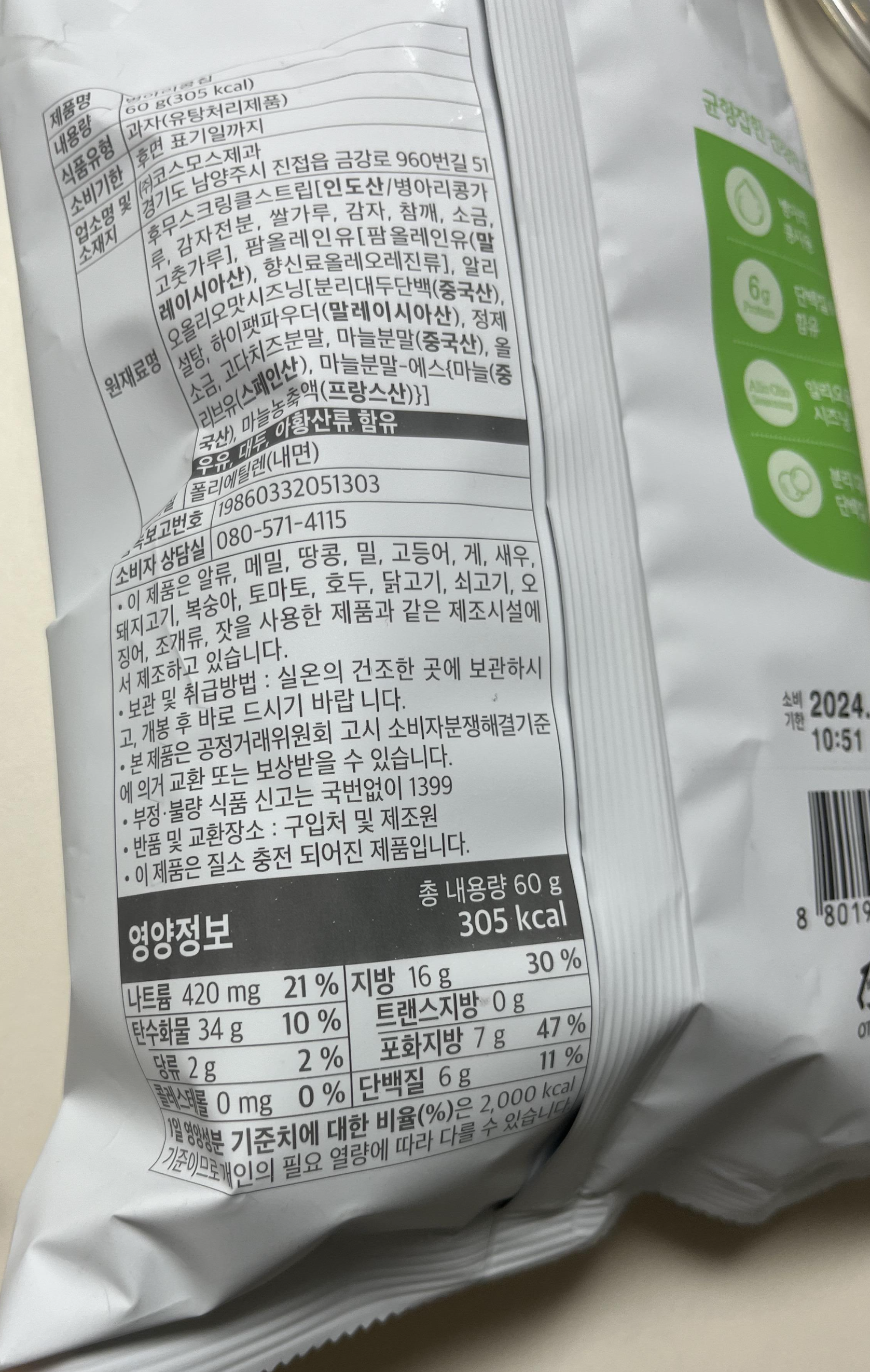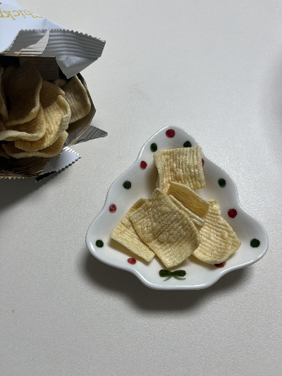 감자과자에 약간의 마늘향과 후추맛? 약간의 짭쪼름