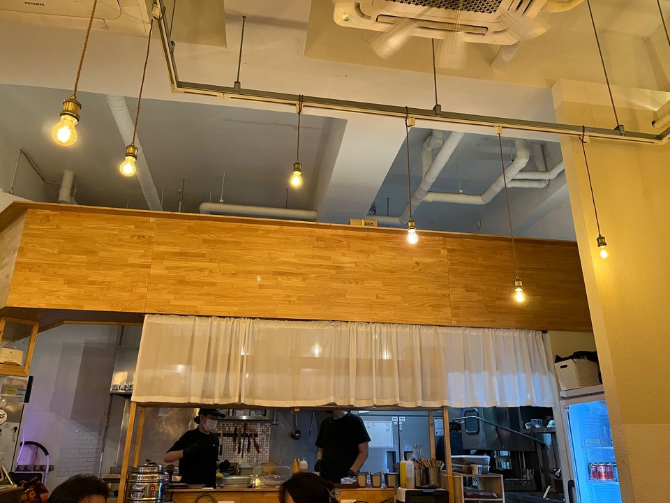 오픈형 주방으로 안에서 음식하는 모습이 보인다.