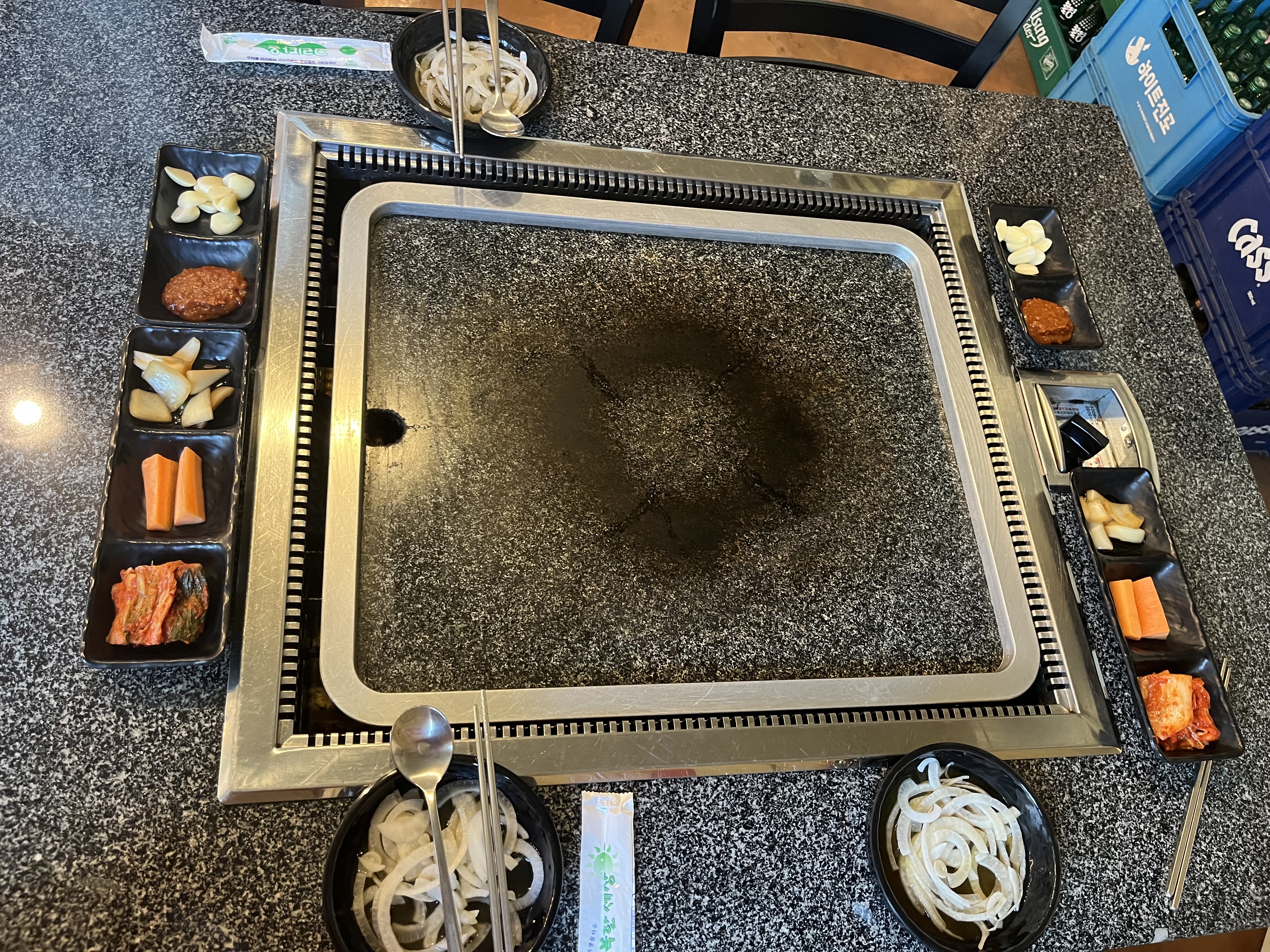 용인 오리고기 맛집 '약속하오리' 의 불판은