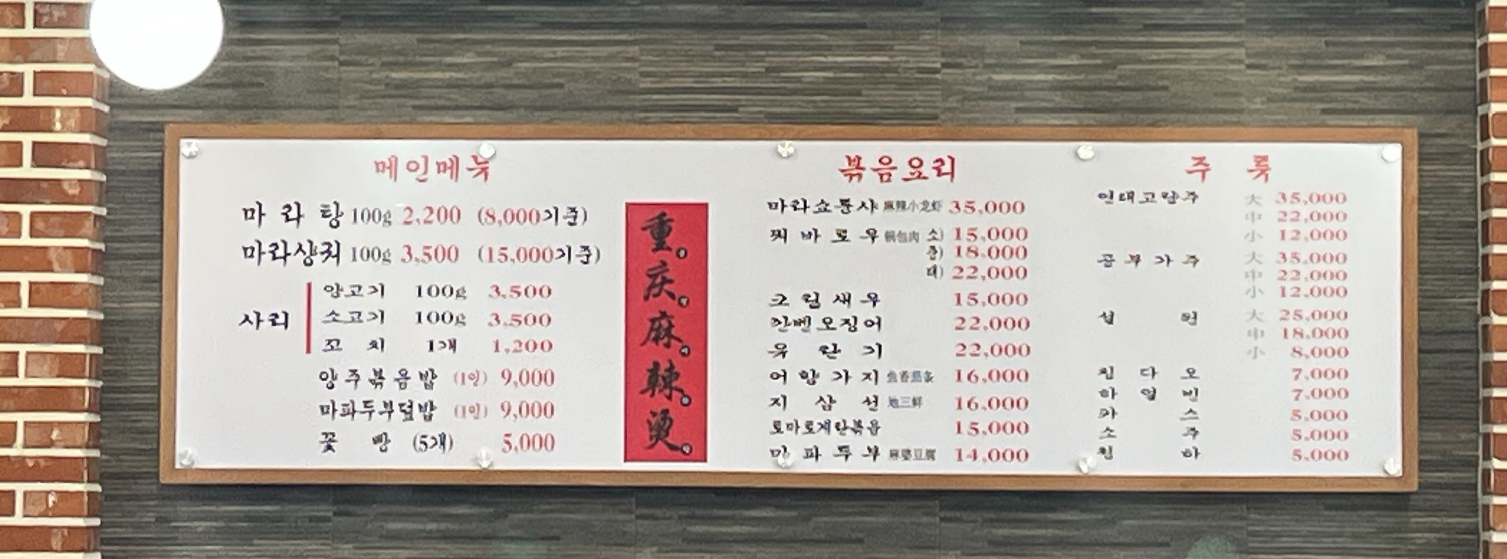 강남 마라샹궈 맛집, 마라탕 맛집 '중경마라탕' 메뉴판