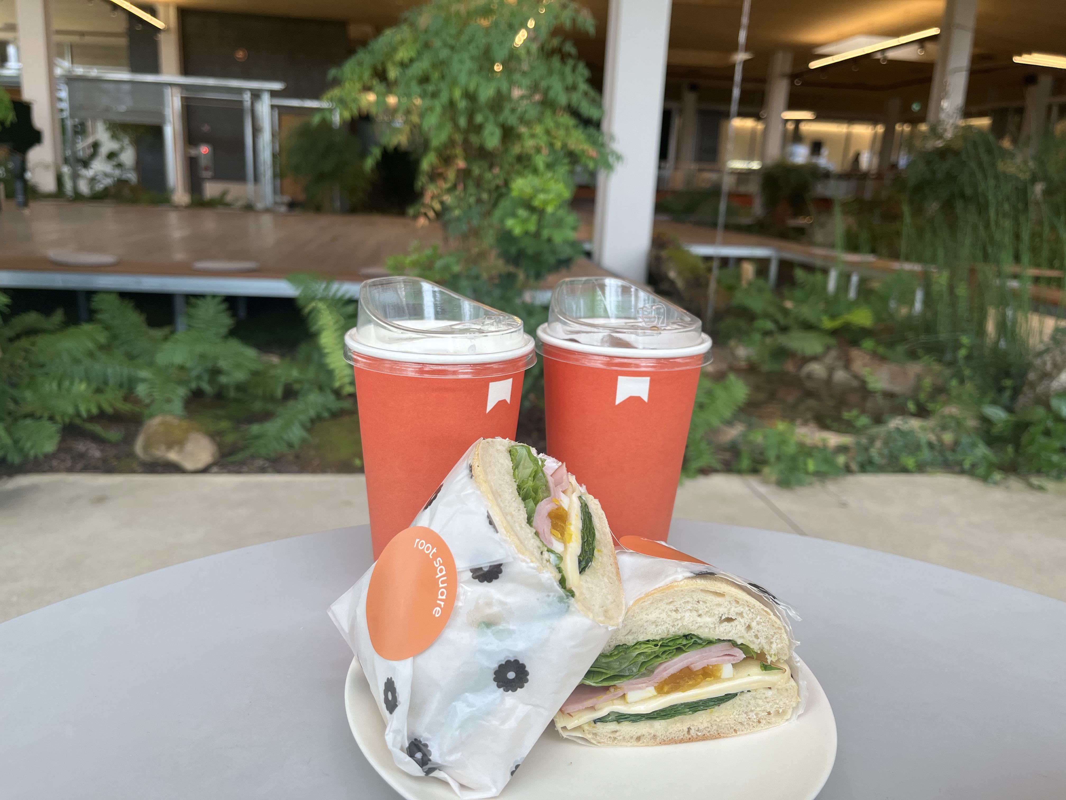 라이스라떼와 허니자몽블랙티를 시키고, 햄&치즈 치아바타 샌드위치도 시켰다.