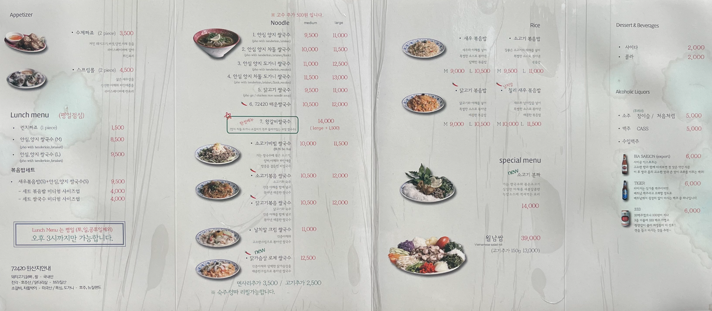사당역에서 맛집이라는 베트남 쌀국수, 월남쌈 전문점 '72420' 메뉴판