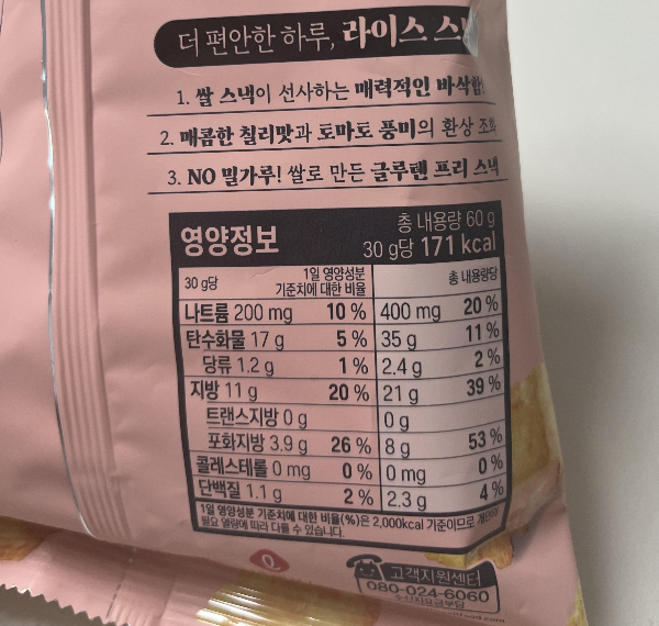 매콤함에 맥주안주로 먹어도 좋은 과자인 것 같습니다.