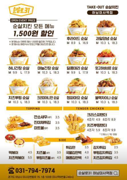 하남 미사에 순살로 31 치킨이 생겼습니다.