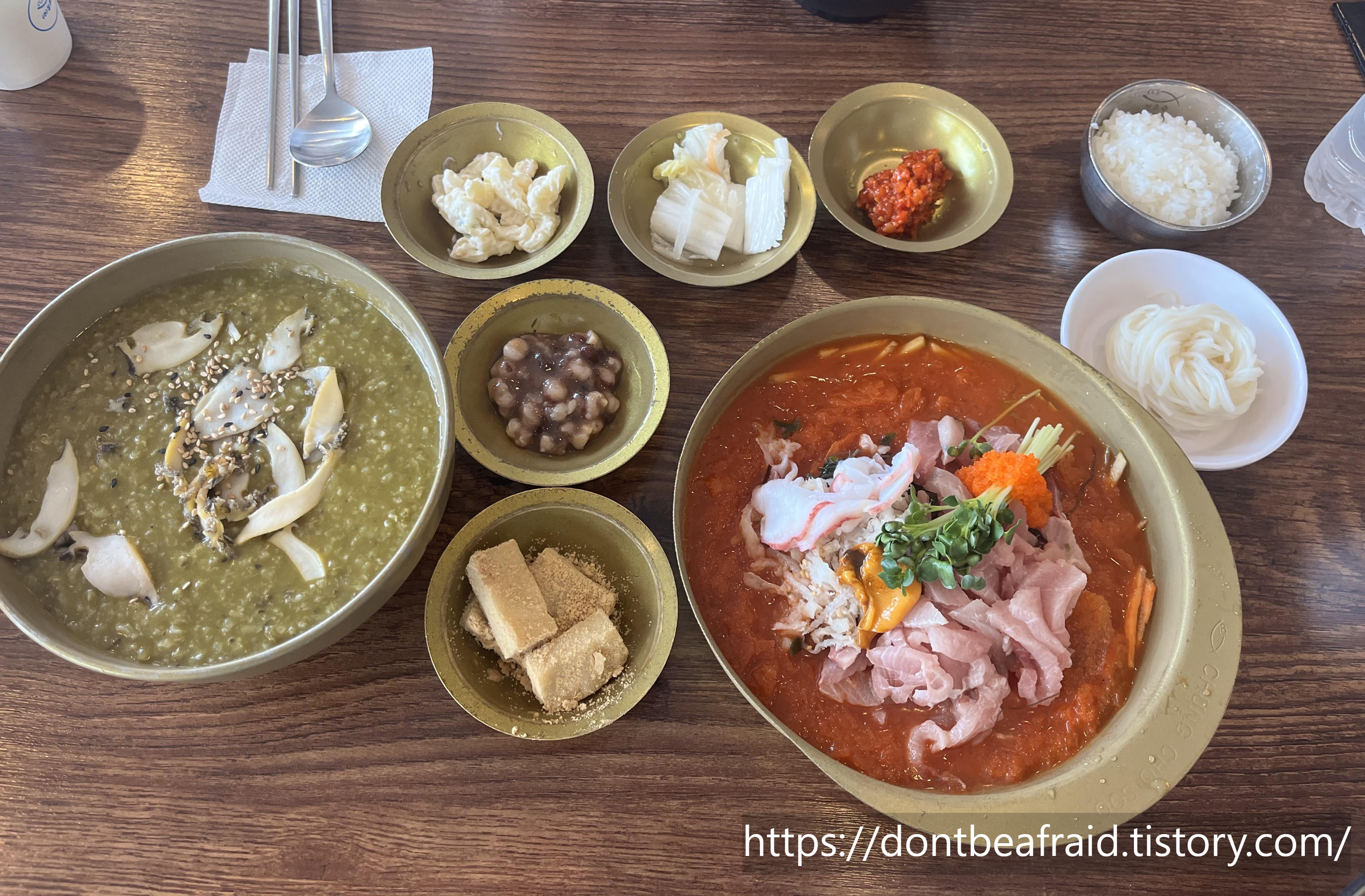 일반 물회와 전복죽을 주문하였습니다.