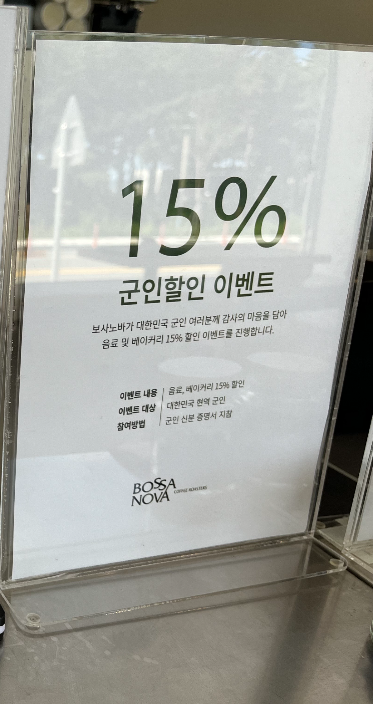 커피가격은 요즘 관광지에 있는 커피 가격들 치고는 착한편이라고 생각 들었습니다. 군인 할인 15%를 해주네요!