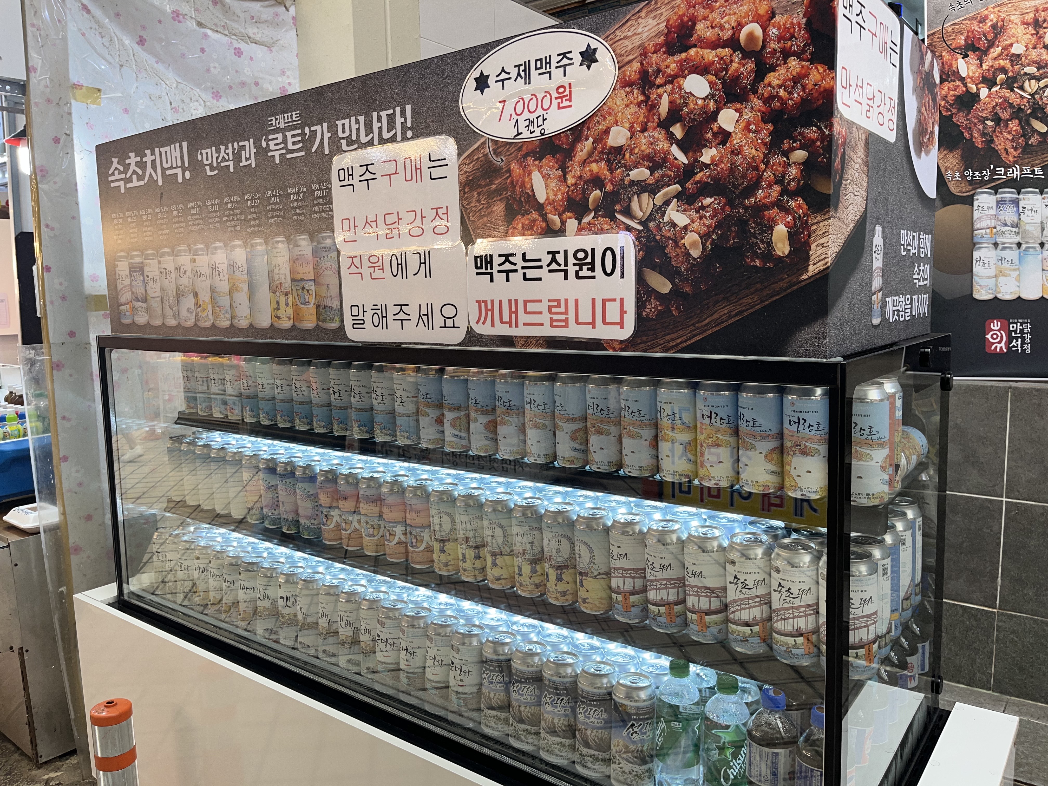 만석 닭강정에서는 강원도에서 파는 다양한 맥주들도 판매하고 있습니다. 저도 ' 동명항' 와 '갯배' 맥주를 먹어봤는데, 꽤 맛있습니다. 향과 맛이 각각 다르니 닭강정 사면서 한번 맛보는것도 괜찮습니다 ㅎㅎ