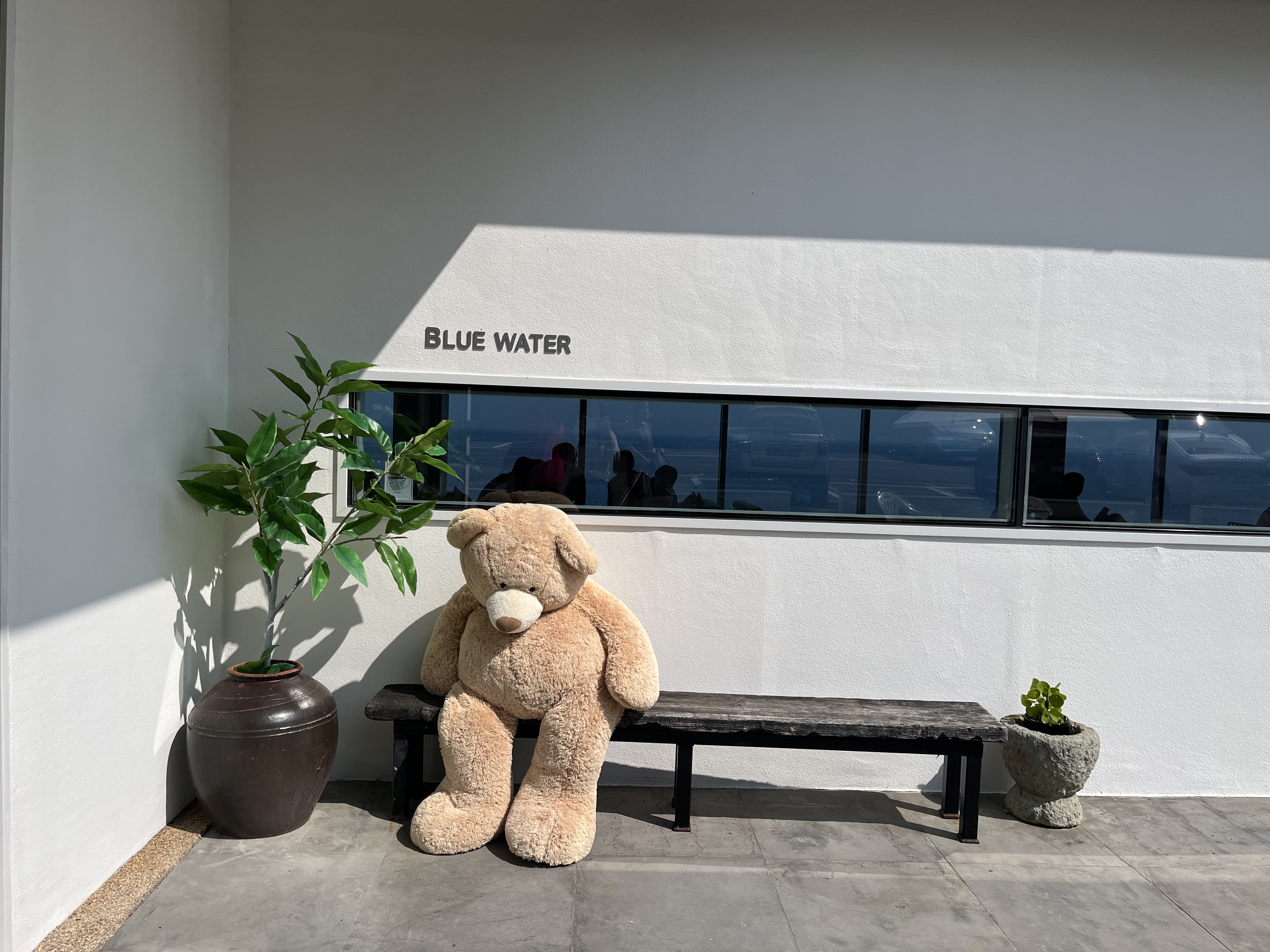 카페 블루워터 입구에 귀여운 곰인형이 있어서 찍어보았는데, 사진스팟이 될 것 같네요 ㅎㅎ