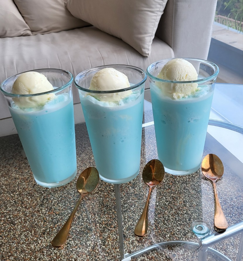 시그니처 메뉴인 브루퐁당 입니다! 바닐라 아이스크림과 소다맛 쉐이크입니다. 바다와 잘어울리는 음료네요 ㅎㅎ