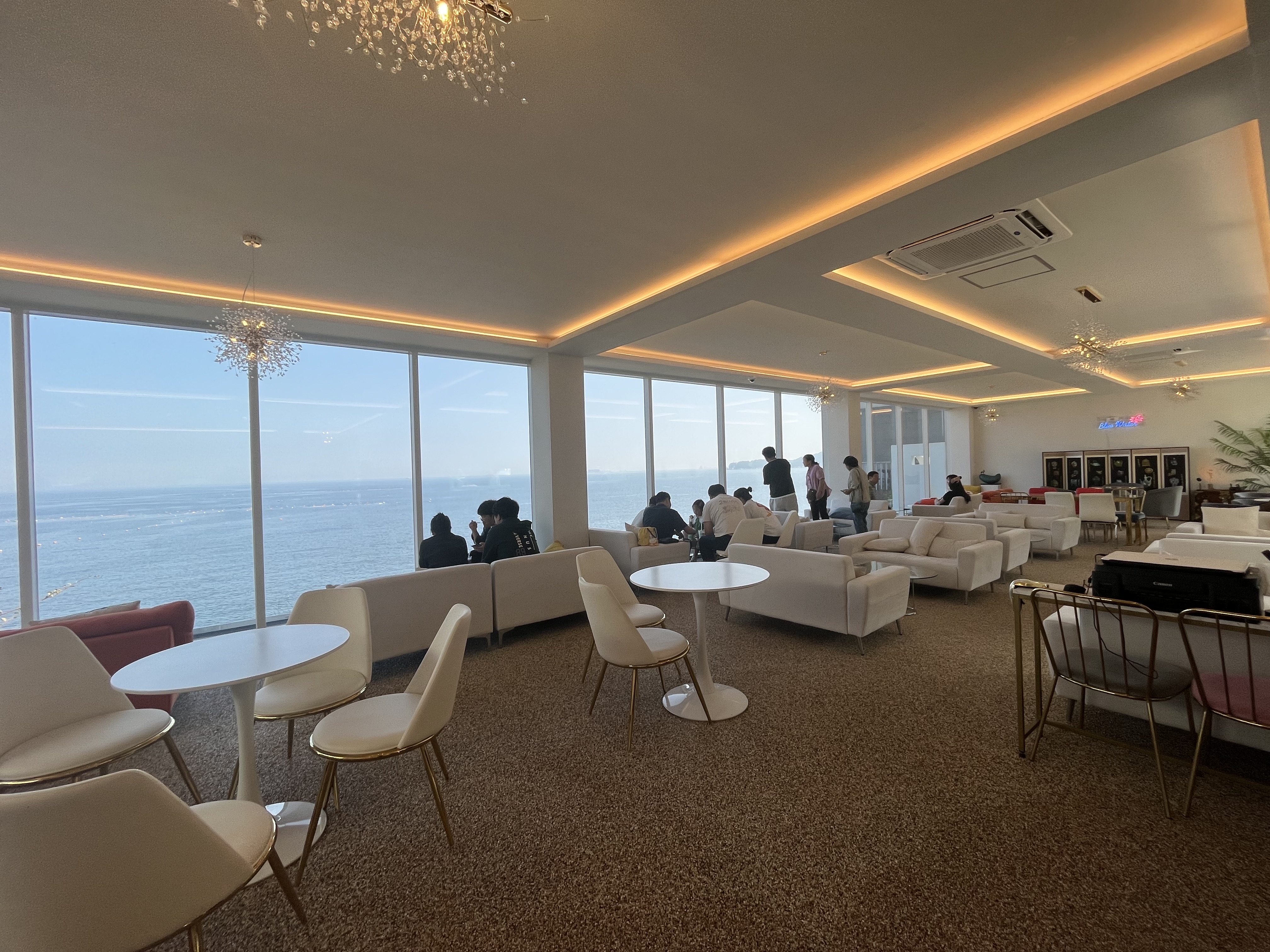 내부는 사진처럼 되어있는데 바다쪽 좌석은 일렬로 구성되어있어 바다를 바라보며 카페를 즐길 수 있습니다.