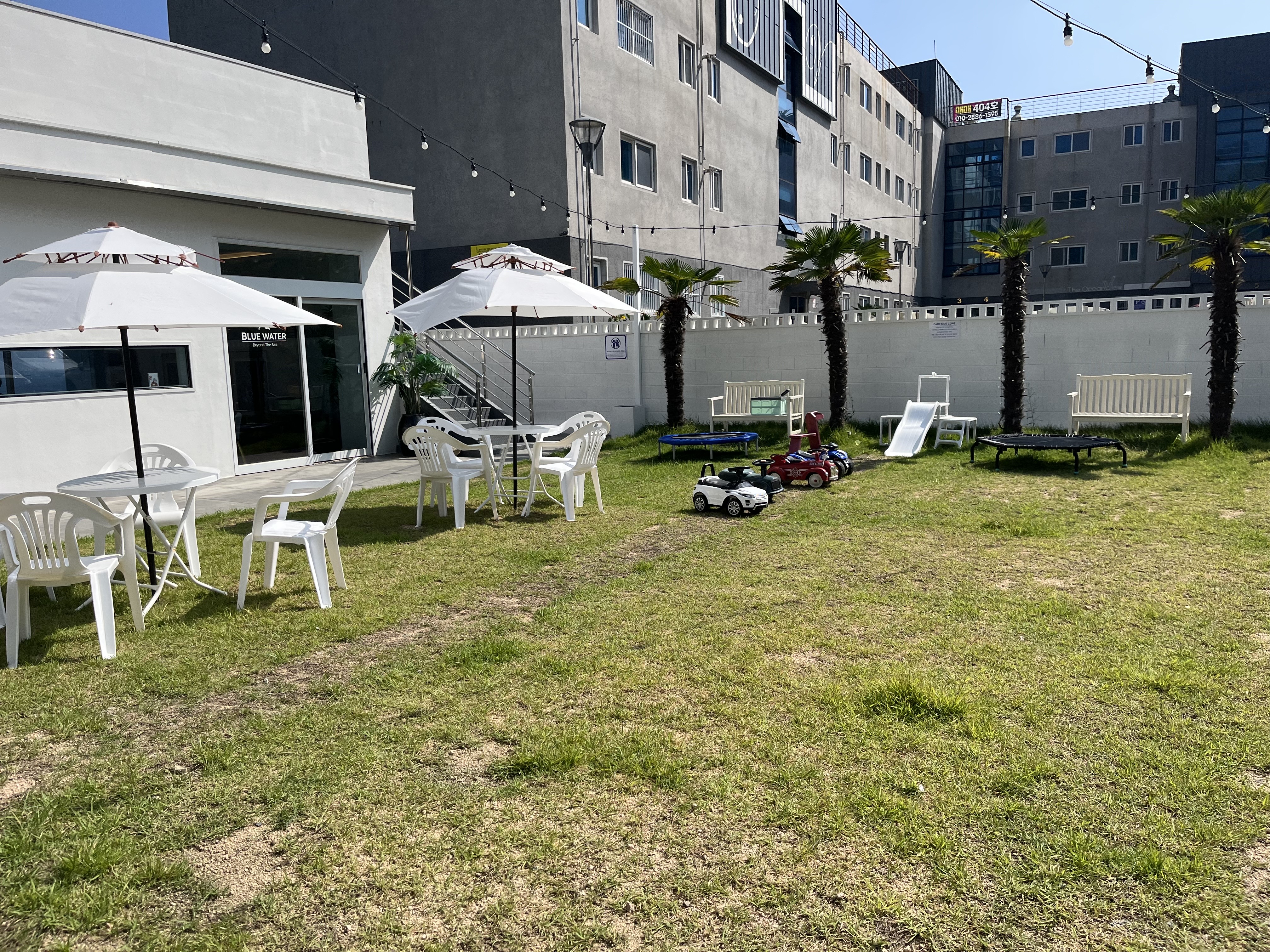 저는 이번 방문에 강아지가 동반하였습니다. 강아지는 카페 안으로 출입할 수 없다고 하여서, 일행 중 1팀은 카페 밖 잔디에서 커피한 잔을 즐겼습니다 잔디와 트램펄린이 있어 아이들이 뛰어놀 수 있을 것 같네요.