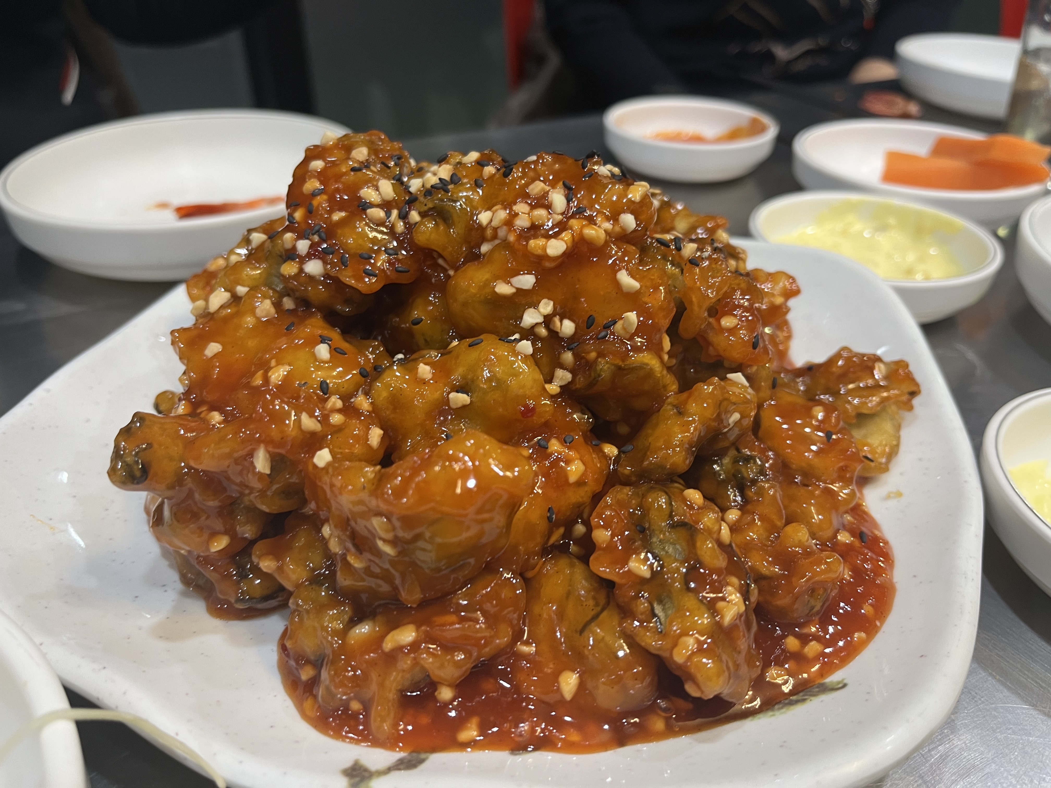 굴 탕수에 닭강정 소스가 버무려져 나오는 음식이었는데, 약간의 매콤함이 식욕을 복돋아 주었습니다.