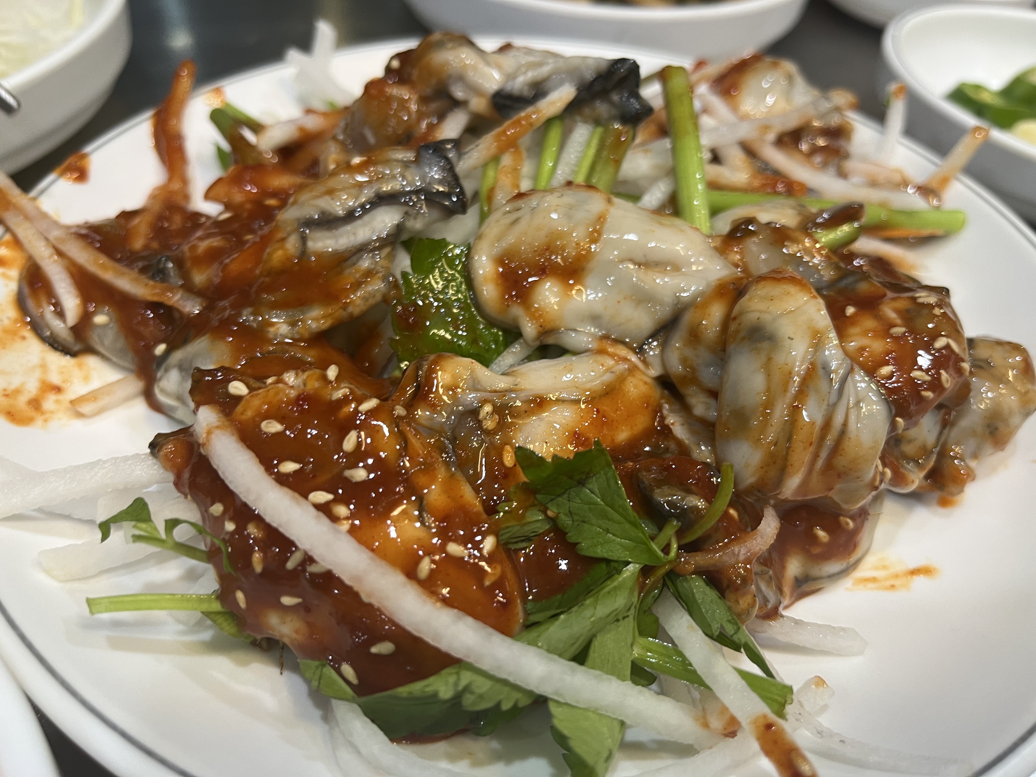 신선한 생굴이 초장에 발려나옵니다. 저는 비릿맛을 먹기 어려워해서 2~3개 먹었는데