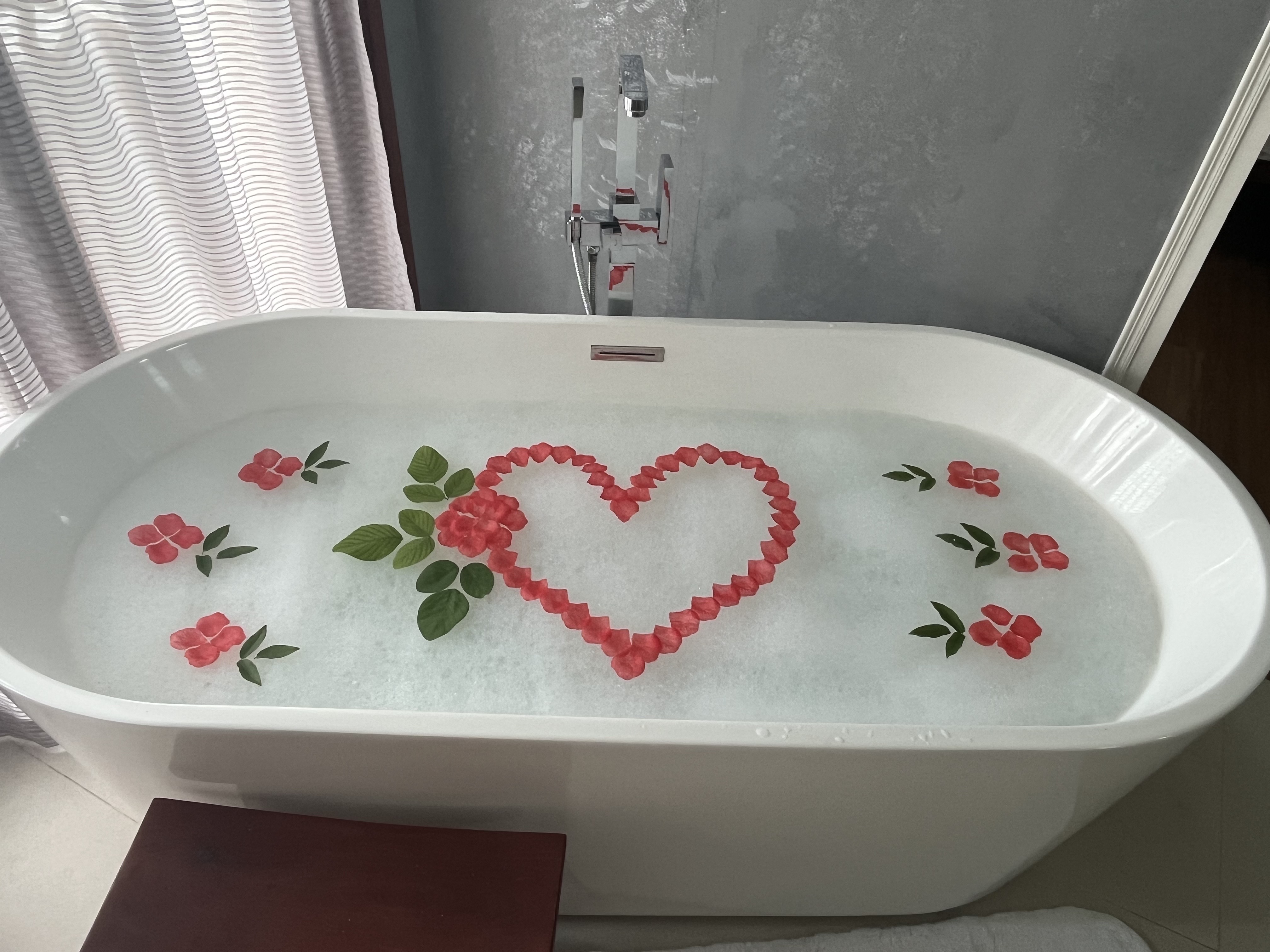 마지막으로 정성스러움에 감동했던 허니문 특전'아로마틱 버블배스와 로맨틱 침대장식' 입니다 > <