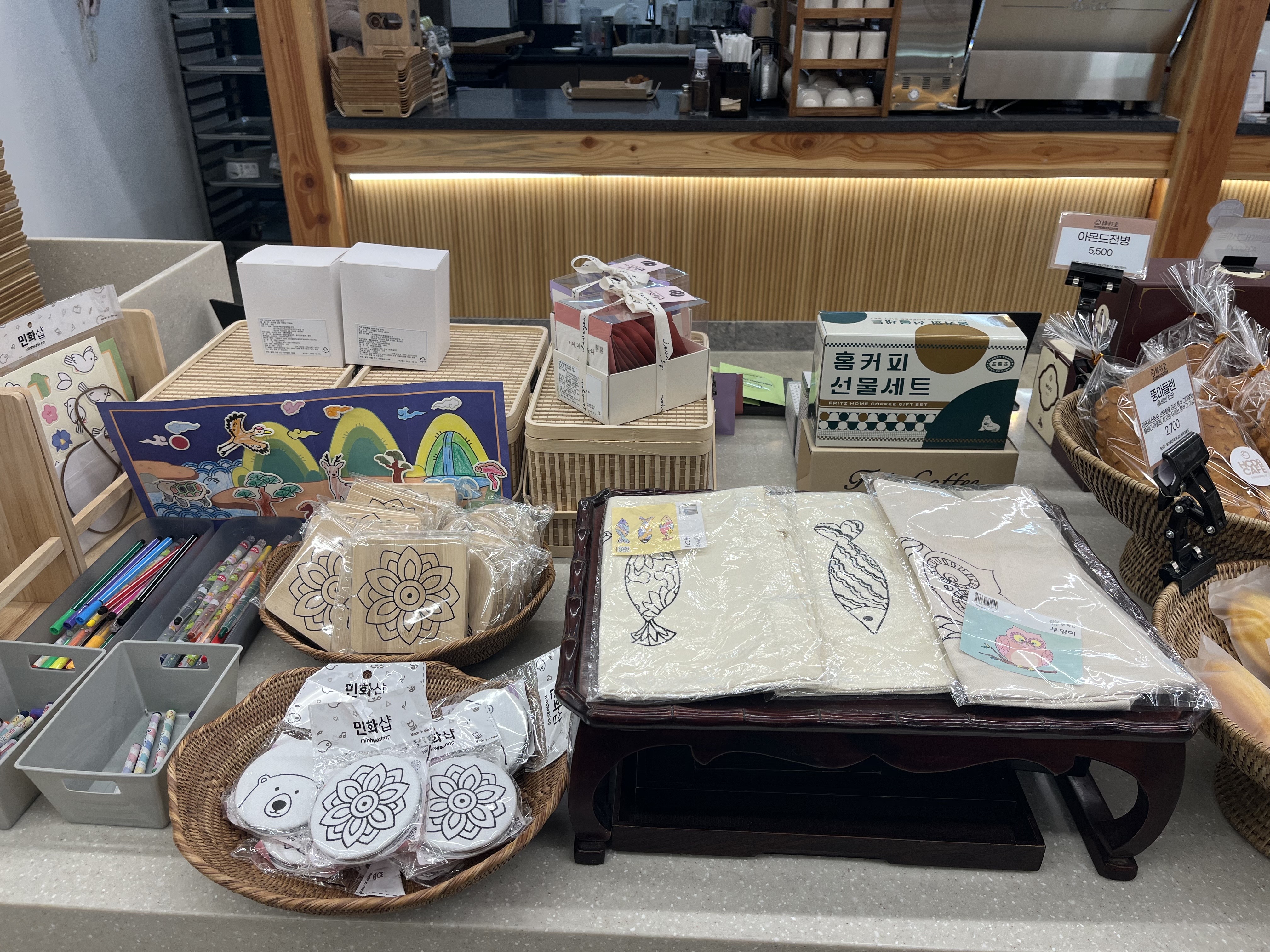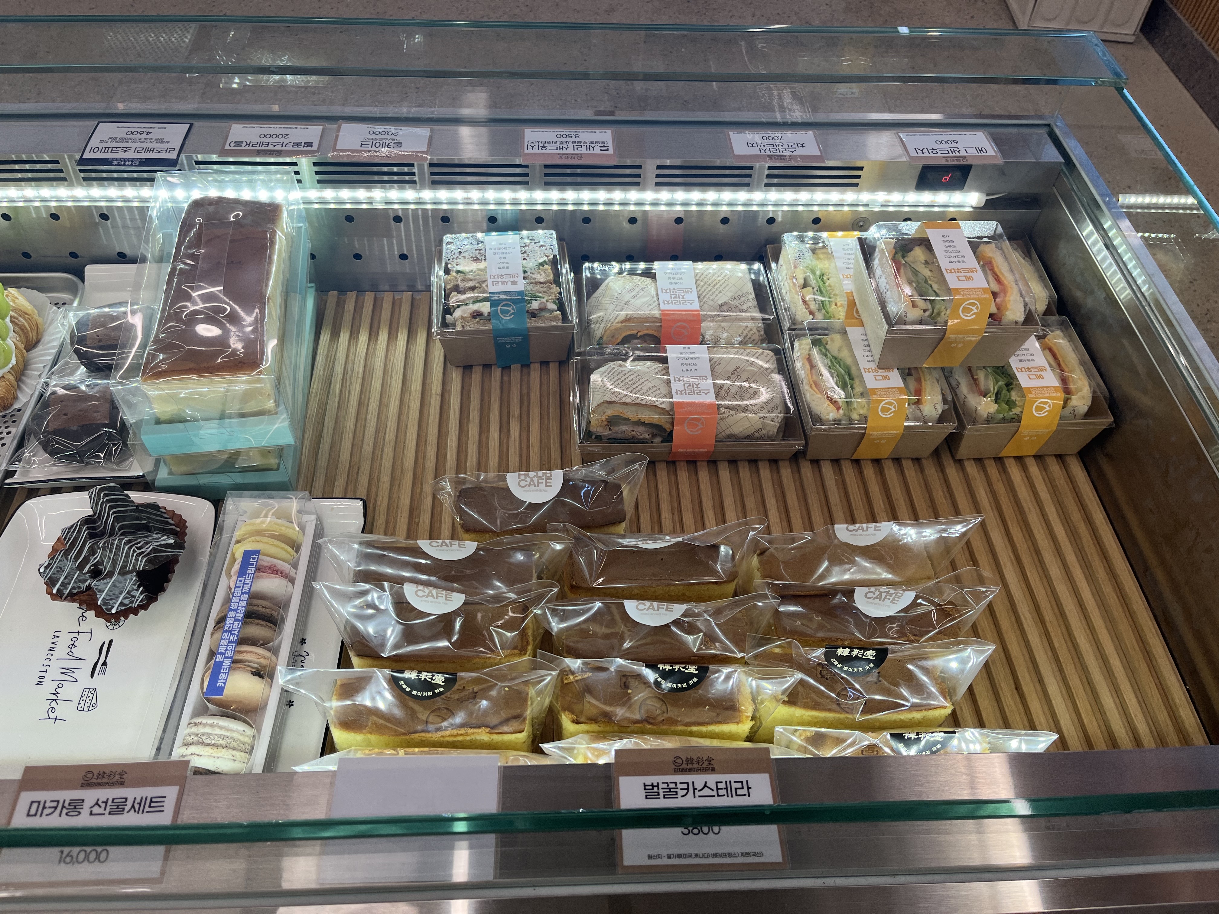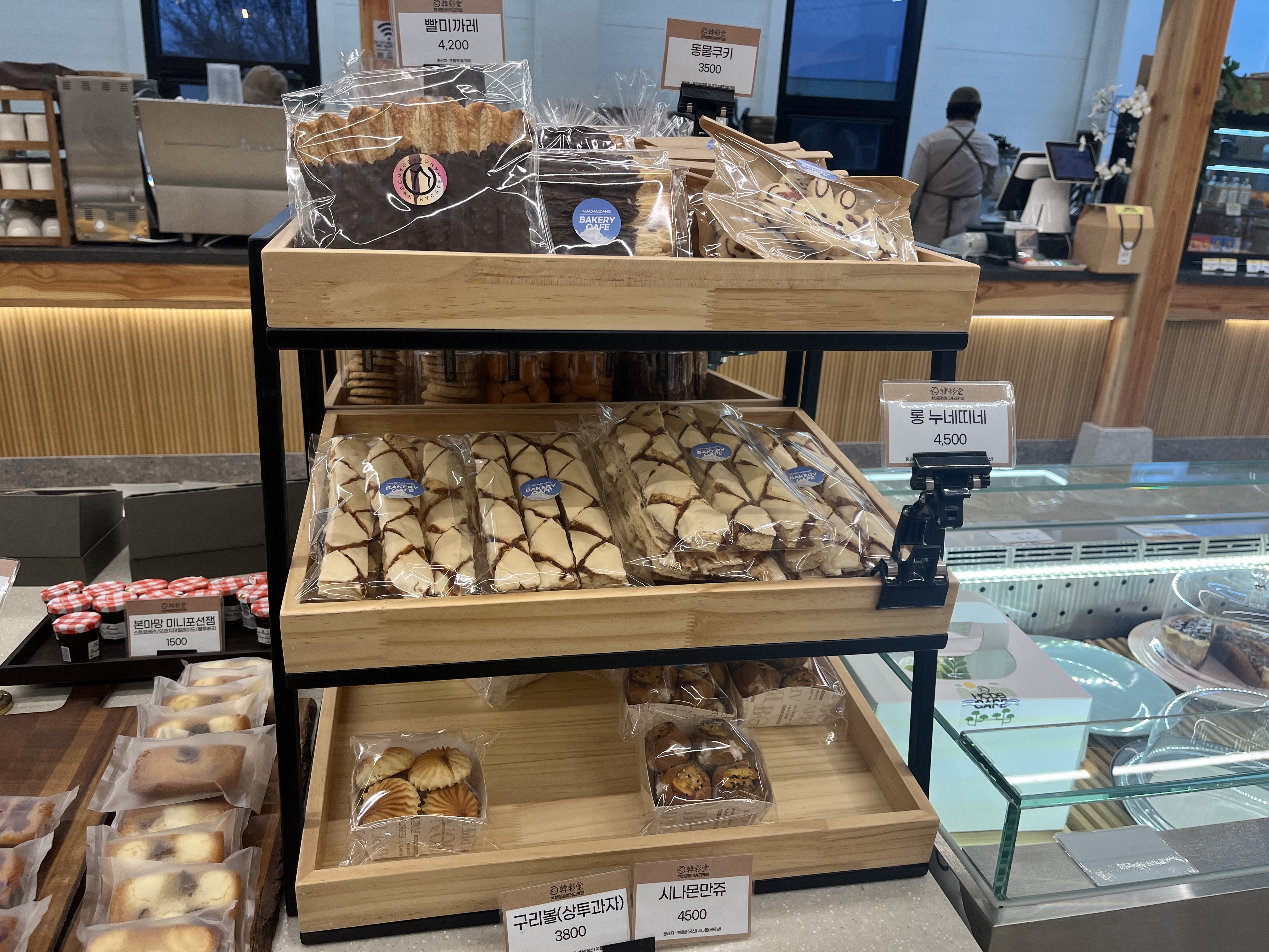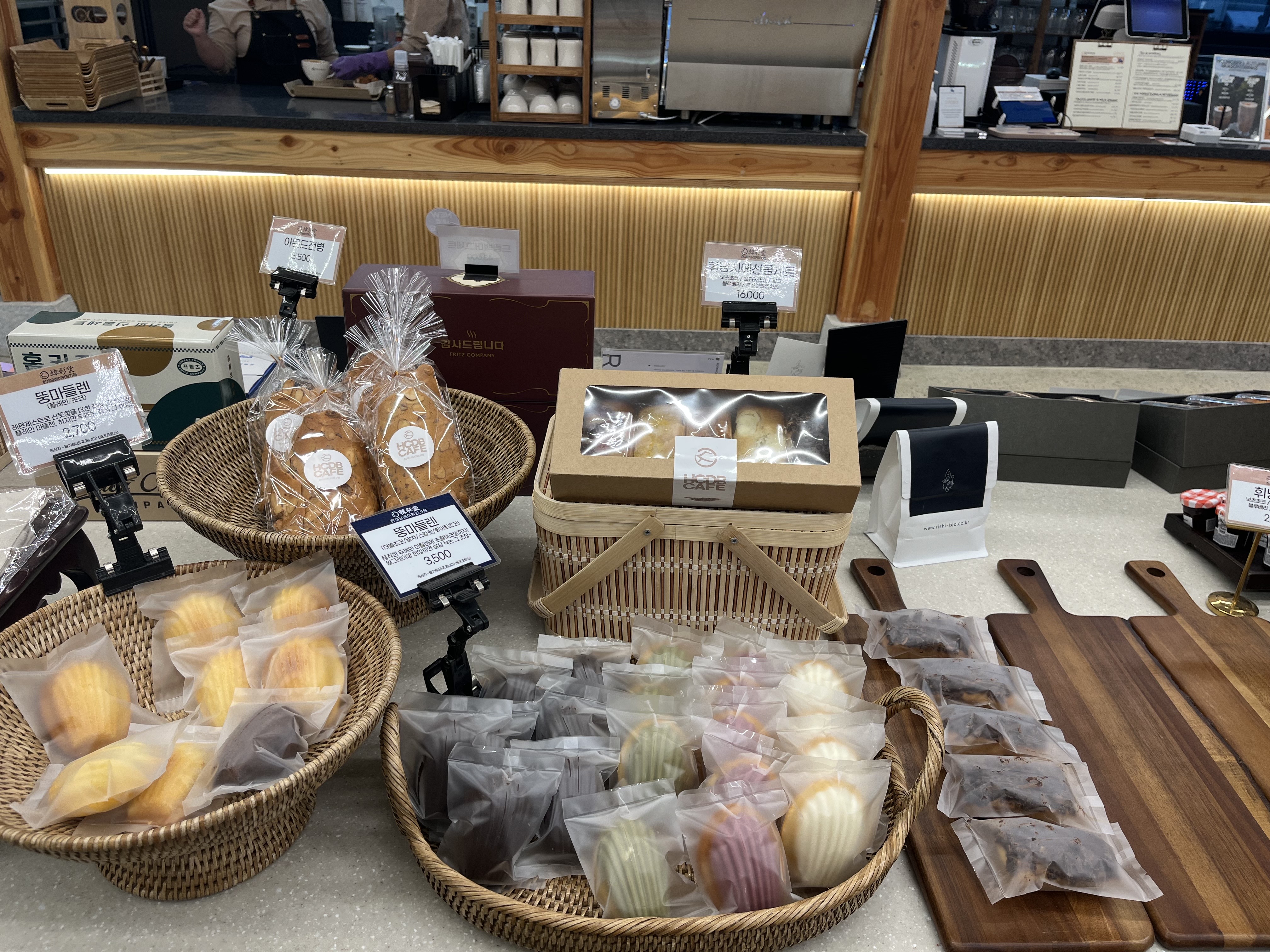 빵과 케이크 과자류, 기념품까지 여러가지가 진열되어있었어요. 오후 늦게 가서 그런지 빵들은 모두 포장이 되어있는 상태였어요.