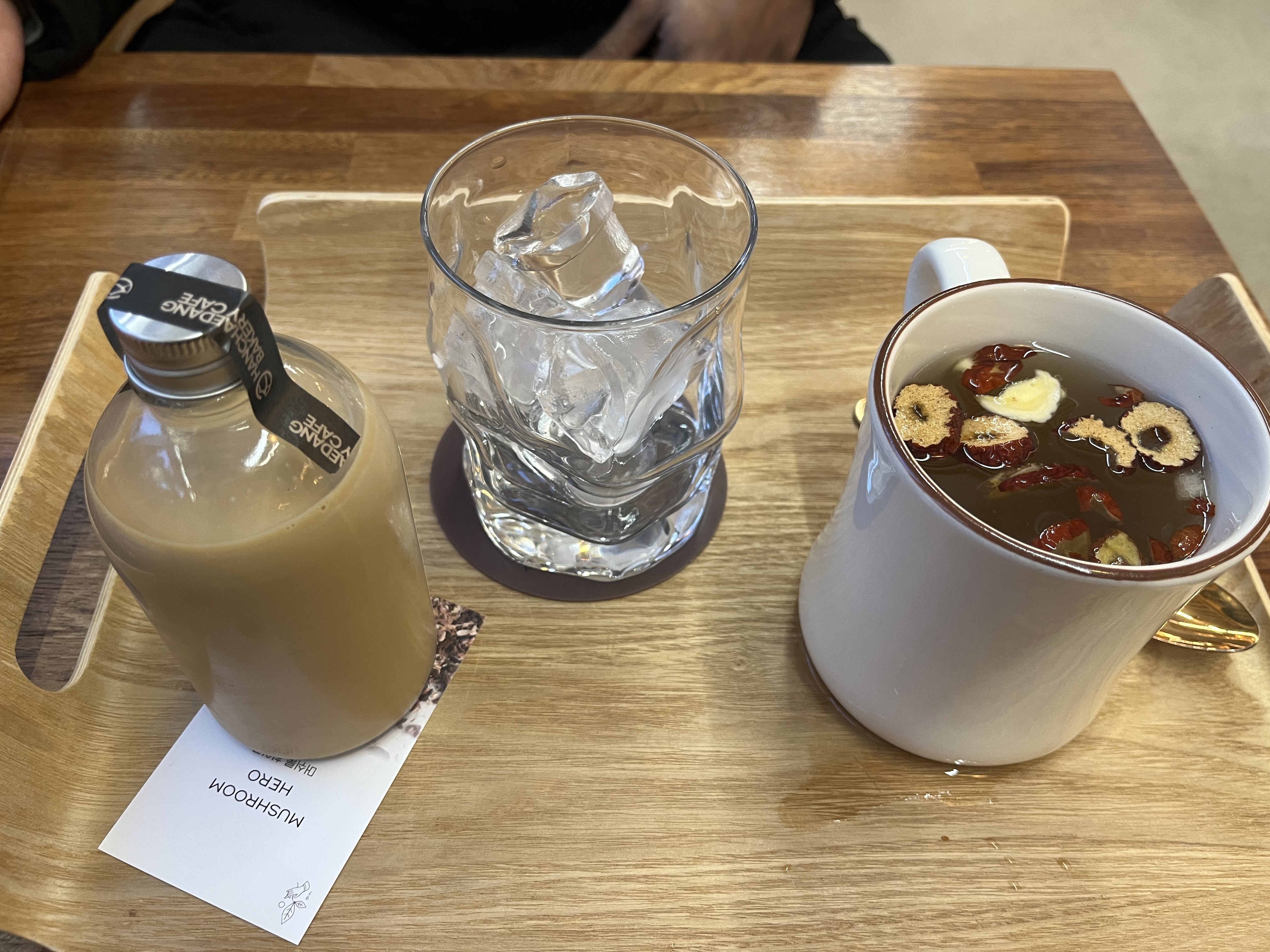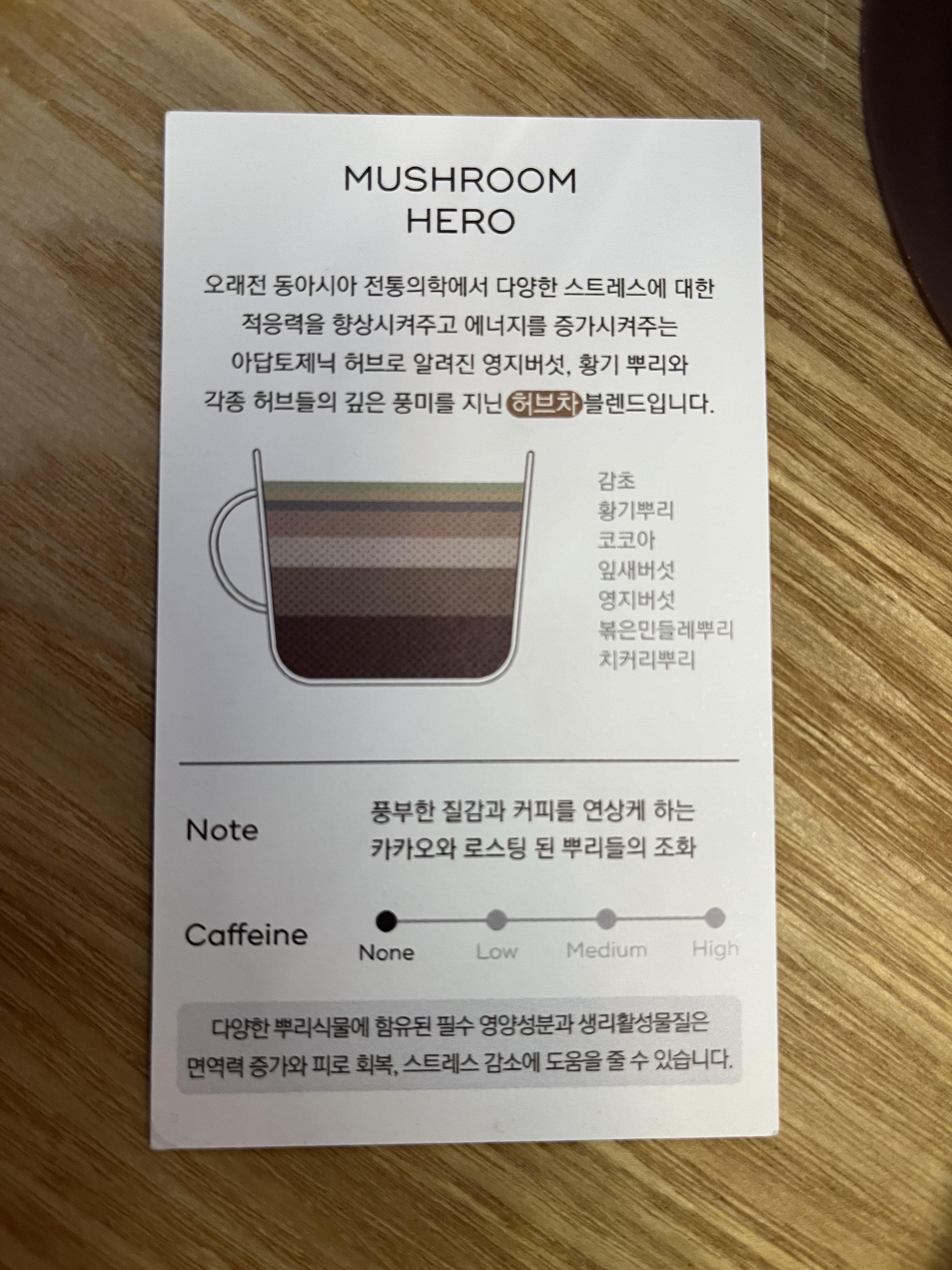 버섯차로 우려내 전통적인 느낌 가득한 이색 시그니처 논카페인 밀크티라고 합니다. 한정수량판매되고 있어요.