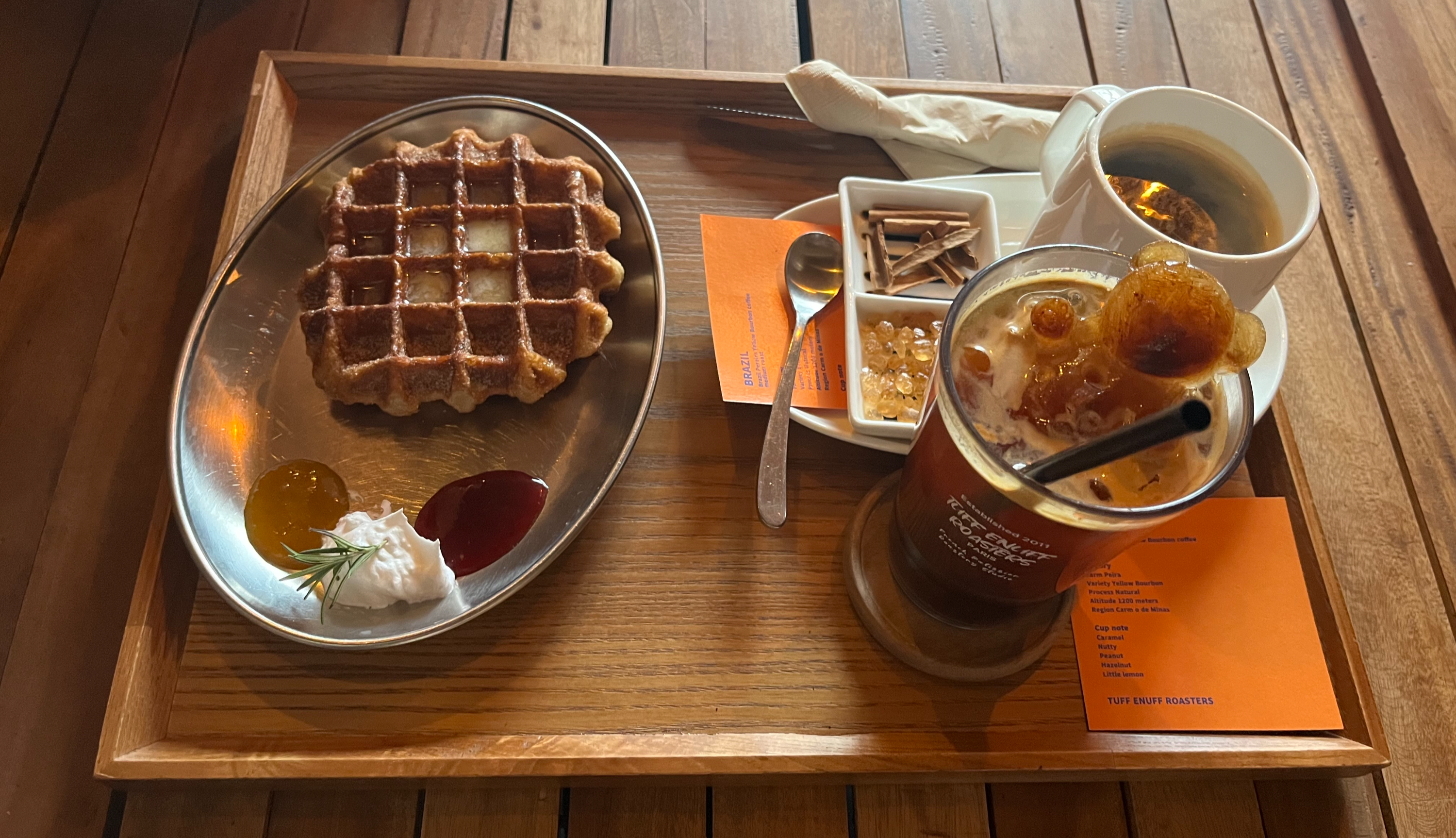따뜻한 아메리카노는 무정제 설탕과 계피를 함께 줍니다. 조금씩 넣어서 향과 맛을 바꿔 먹는것도 재미가 있고 독특했습니다. 와플을 다먹은 후 빵이 맛있어서 몇 개 포장해서 왔답니다.