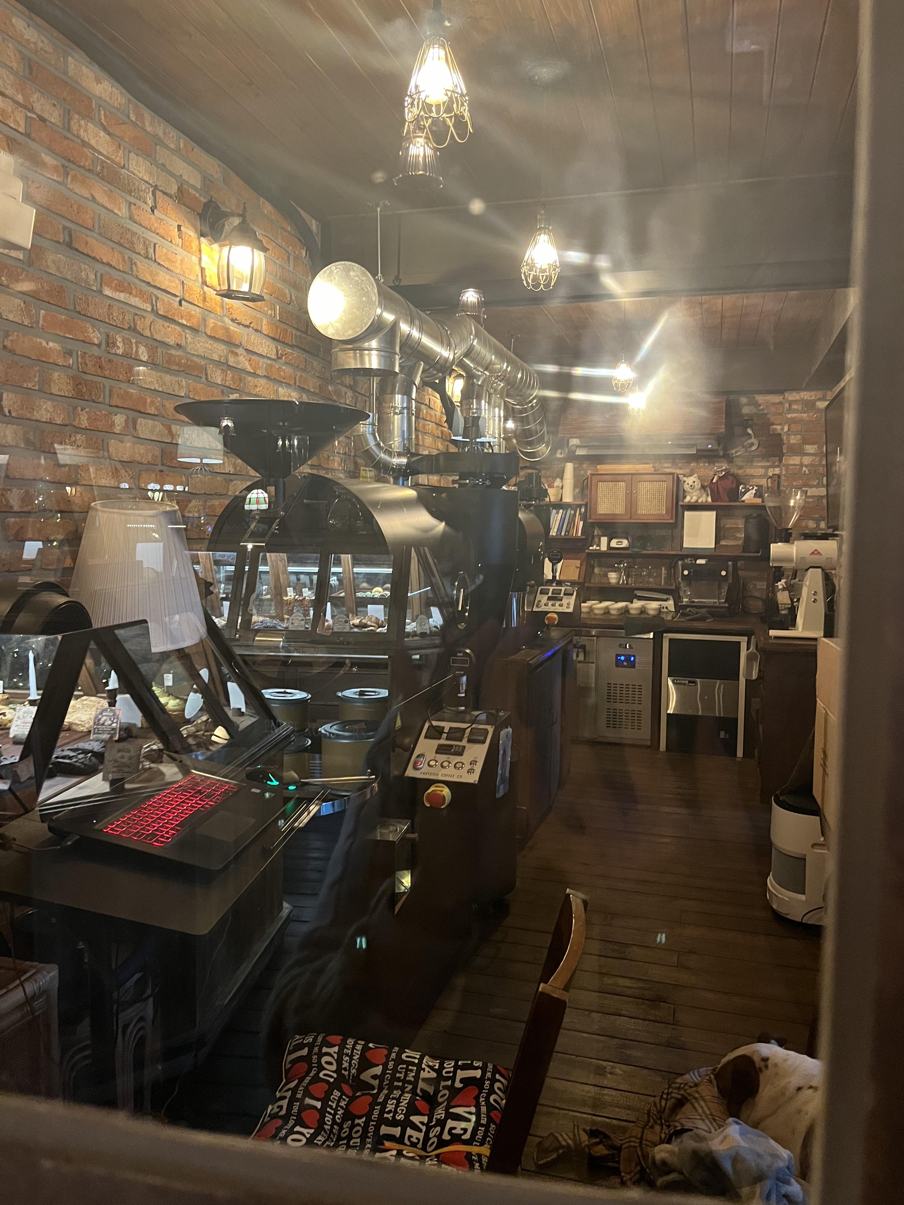 커피 로스팅하는 공간에 커다란 강아지가 누워있더라구요. 편하게 누워있는 모습이 아주 귀여웠어요.