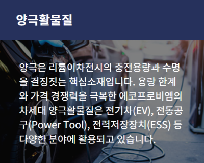 양극활물질은 원가의 30~40% 를 차지할 정도로 핵심이다.