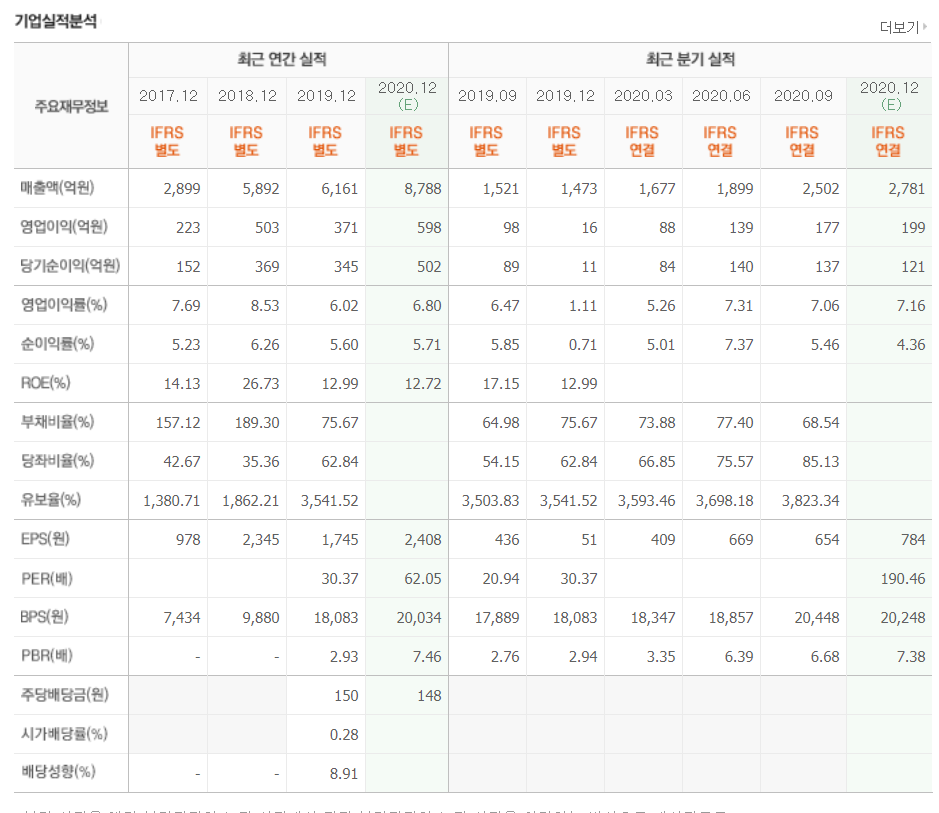 -연결기준 2020년 4분기 매출액 2,774억, 영업이익 194억원을 전망. 4분기는 주요 고객사의 재고조정과 원재료가격 상승에 따라 3분기 대비 매출액 성장률 둔화와 영업이익률이 소폭하락하나 그래도 견조한 실적을 달성할 것으로 전망한다.