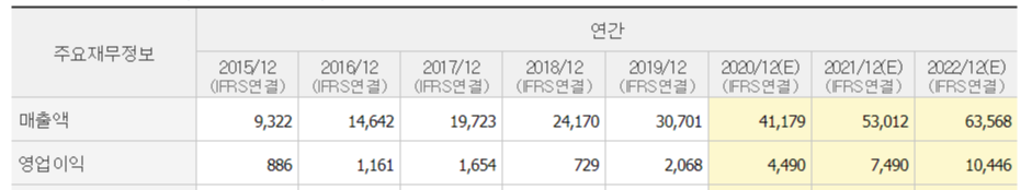 -매출, 이익, 주가가 동반 성장하는 바람직한 모습을 보임.