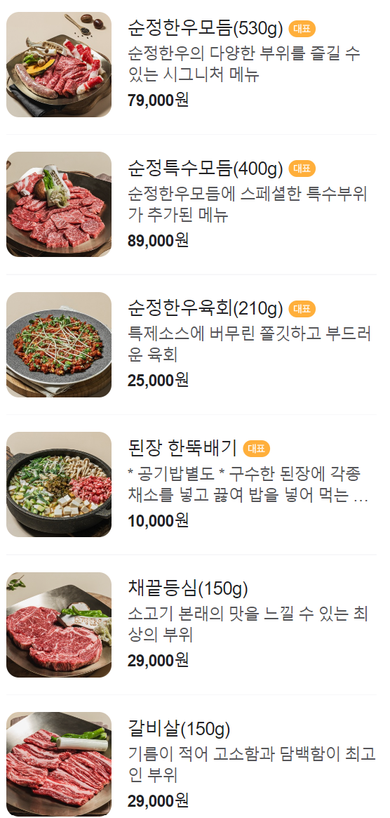 사진은 순정한우정육식당 네이버 소개에서 가지고 왔습니다.