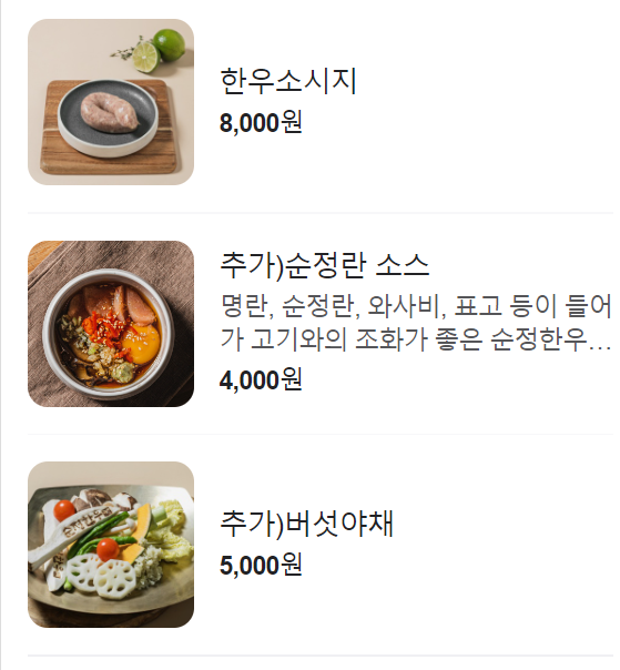 메뉴는 네이버 메뉴에서 검색해서 가져왔습니다.