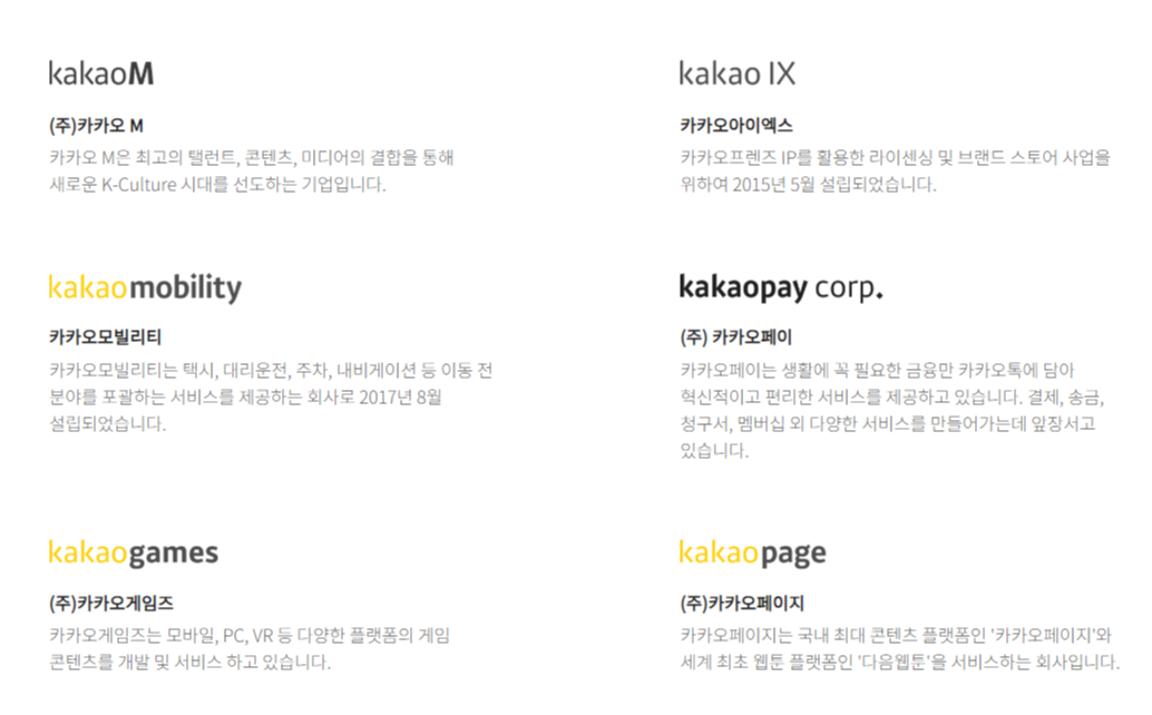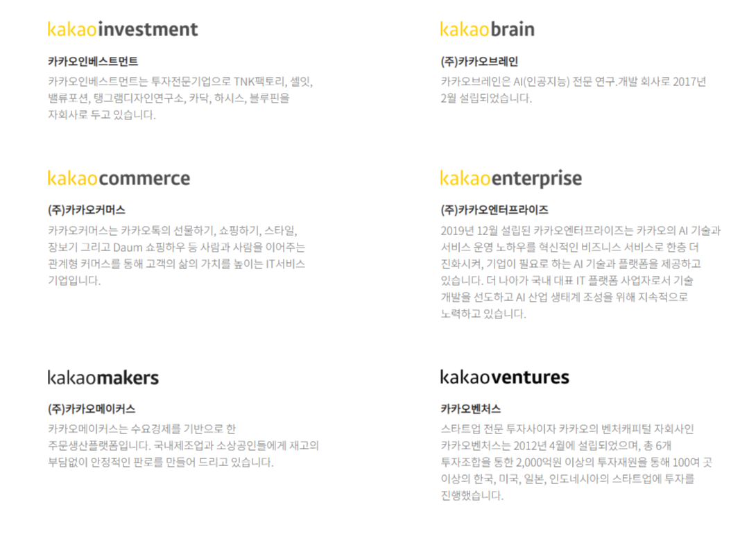 -카카오 본사의 직원은 감소 추세인데 종속회사의 인원은 증가하고 있다. 본사는 가볍고 효율적으로 만들면서, 종속회사의 인원을 보충하며 사업을 빠르게 확장해나가는 전략으로 보임.