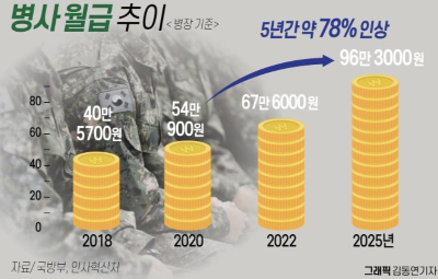 정부는 2025년 까지 병사들의 월급을 올릴 계획을 세우고 있습니다.