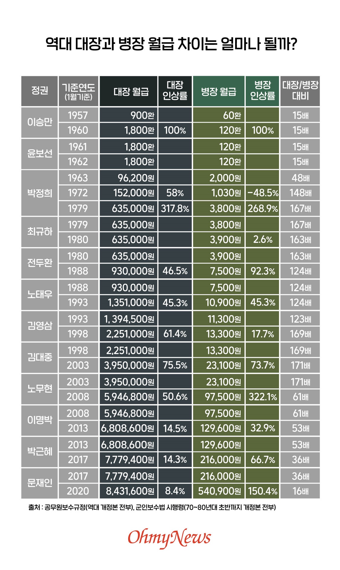 출처:대장과 병장 월급 차이... 이 정도일 줄은 몰랐을 거다 - 오마이뉴스 (ohmynews.com)