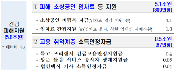 ▶ 코로나 피해 소상공인과 고용 취약계층 - 총 5조 6000억원을 지원