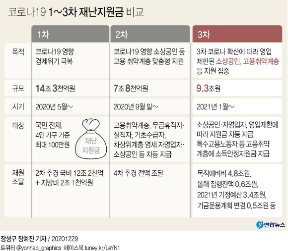 2021년 1월 11일부터 3차 재난 지원금 지급