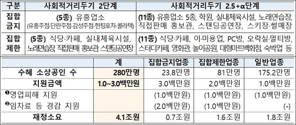 + 집합금지 업종 23만8000명 - 200만원을 더 얹어준다.