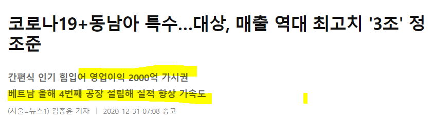 오늘은 음식료품 관련주 '대상'이라는 기업에 대해 알아보겠습니다.