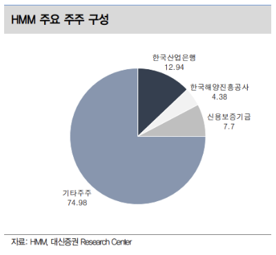 - 최대주주는 한국산업은행과 한국해양진흥공사로 각각 12.94%와 4.38%의 지분을 보유하고 있음