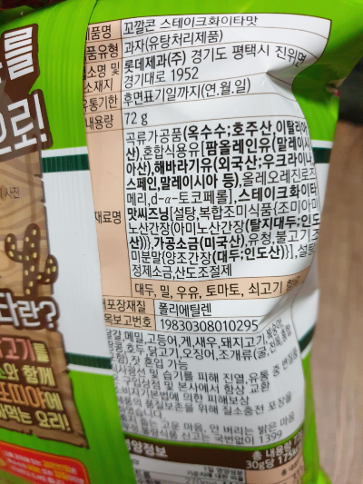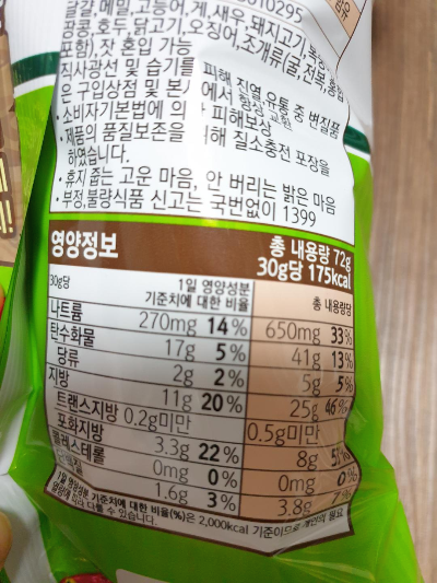 꼬깔콘의 영양정보와 상세정보도 알아봅시다.