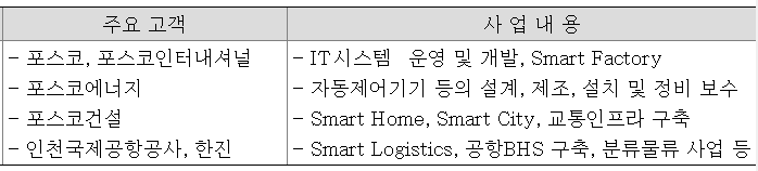 주요사업을 간략히 요약하여 알려드리고자 한다. 자세한 사업설명이 궁금하시다면, 포스코 ICT 홈페이지를 둘러보시기를 권한다.