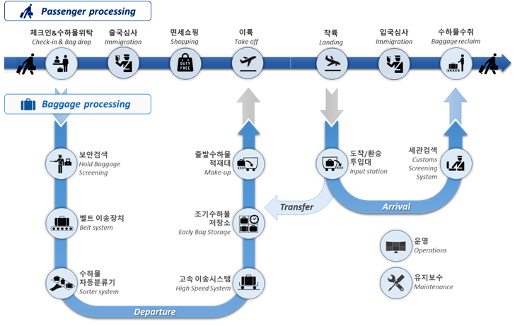 - 수하물 수취대 : 수하물 도착 공간의 효율적인 운영을 위해 모듈식, 저소음 캐로셀(Carousel) 맞춤 제작