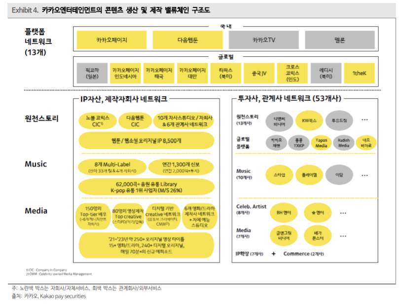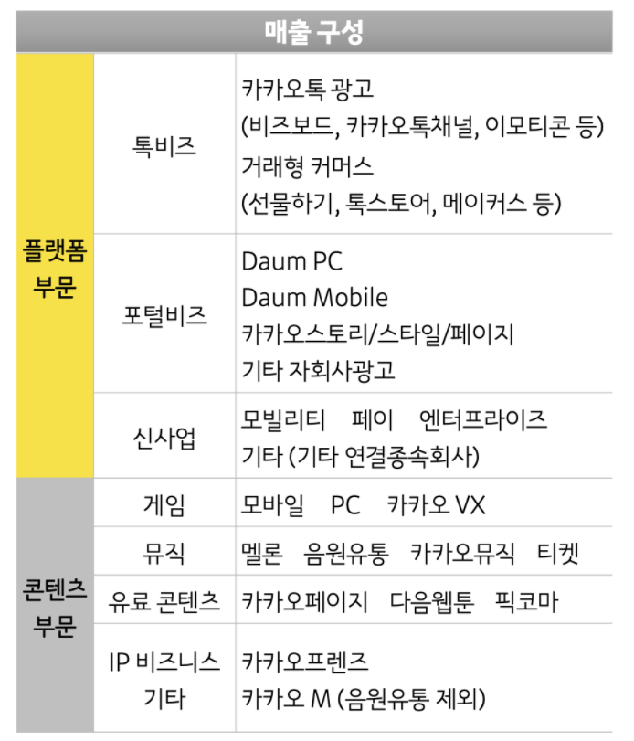 카카오M의 드라마, 오리지널 콘텐츠 등의 영상 콘텐츠 매출 증가와 음반 유통 호조로 전년 대비 6% 상승한 3747억원을 기록하였다. 카카오재팬의 픽코마는 작년 7월 일본을 비롯한 글로벌에서 매출 1위 디지털 만화앱으로 자리잡았다.